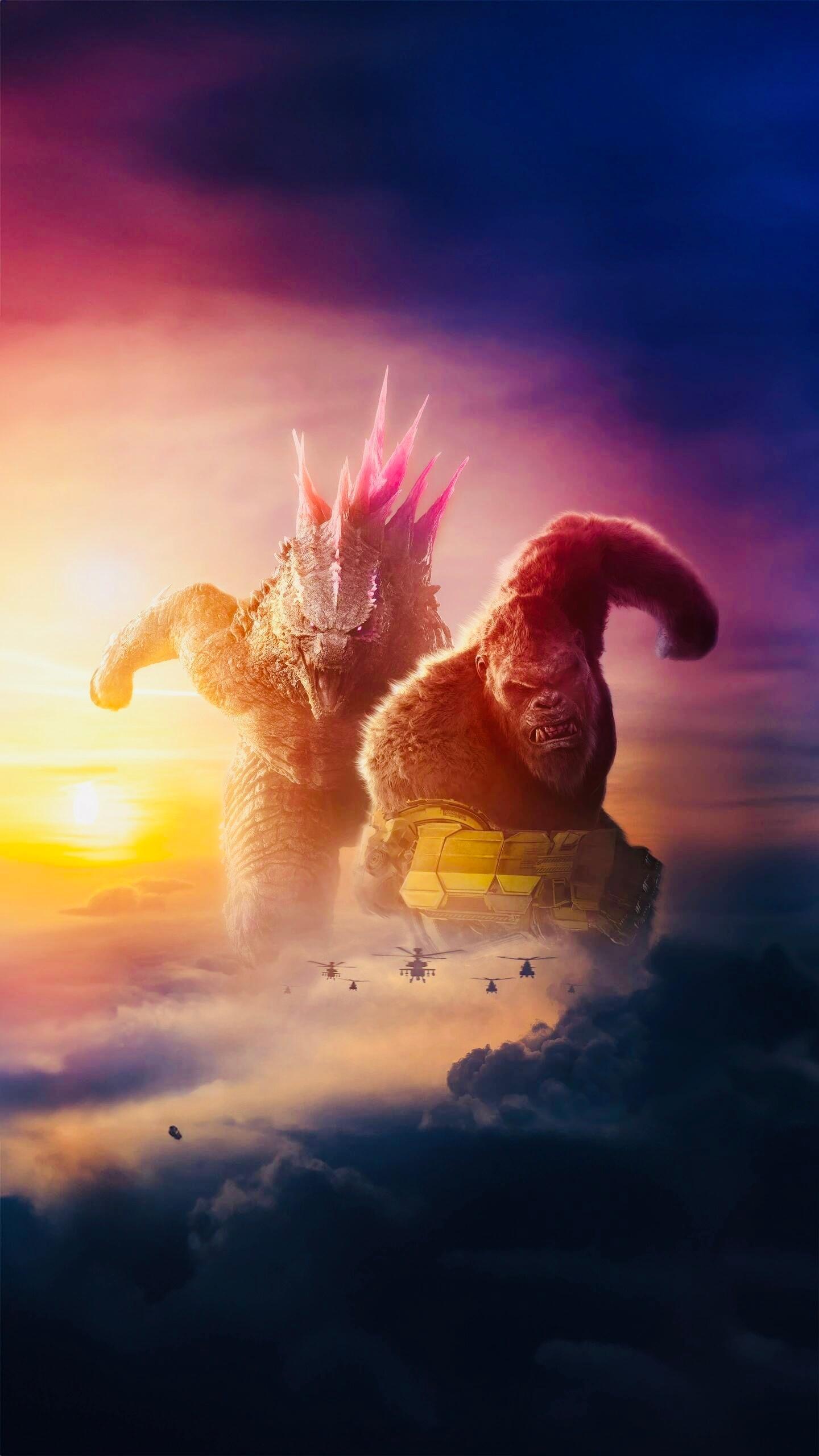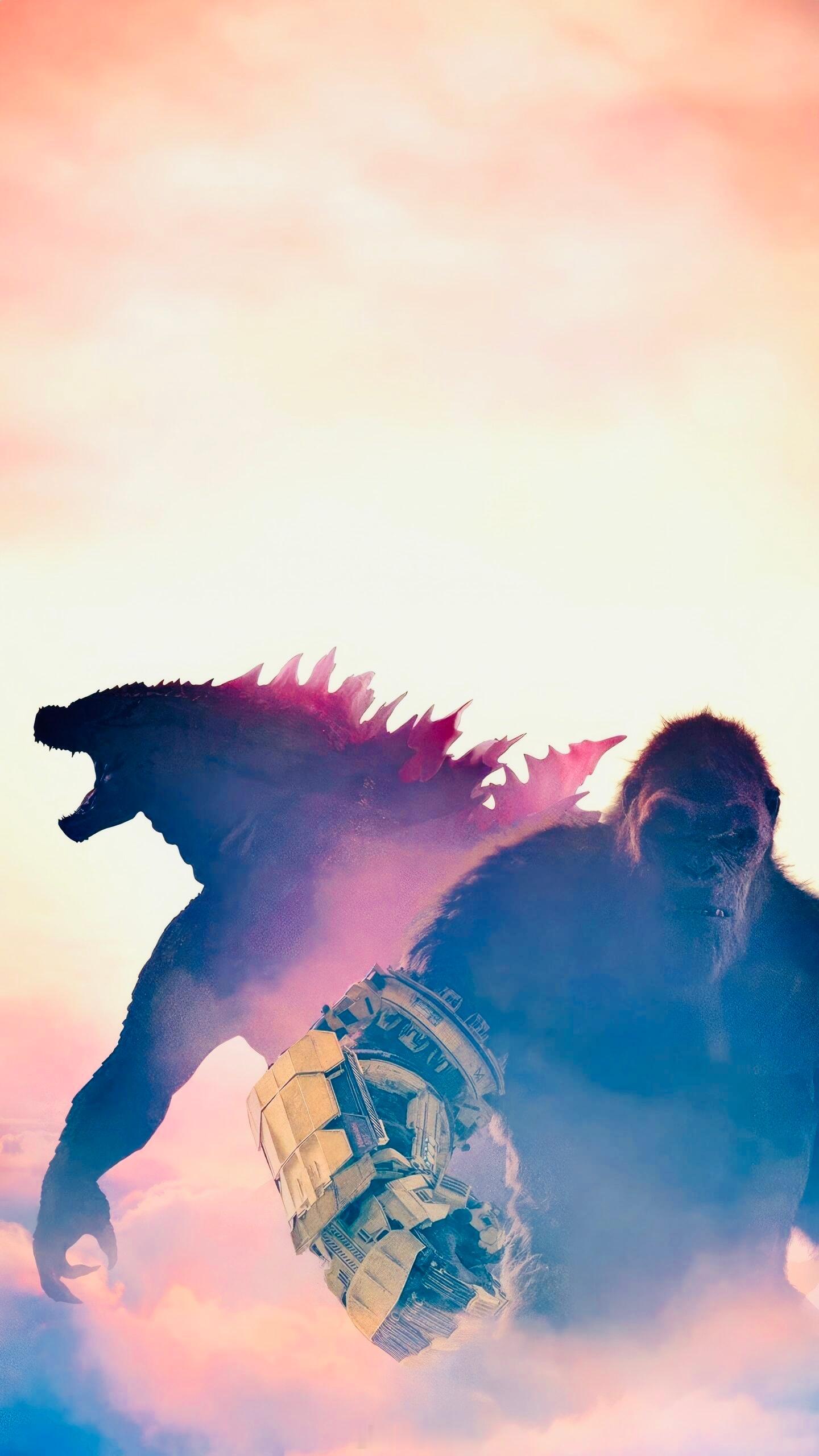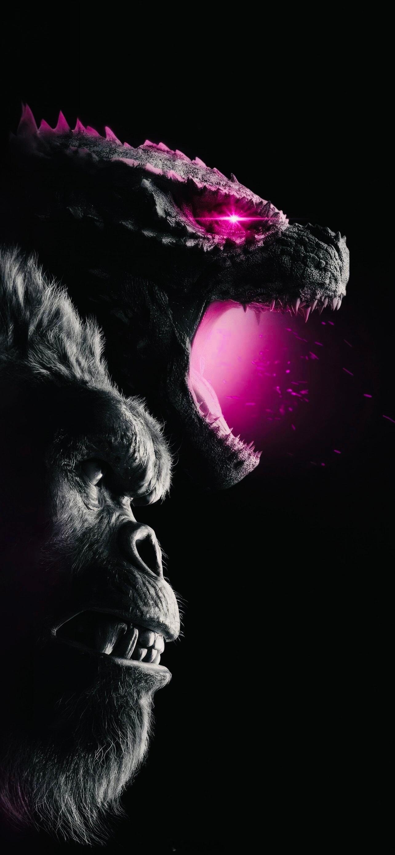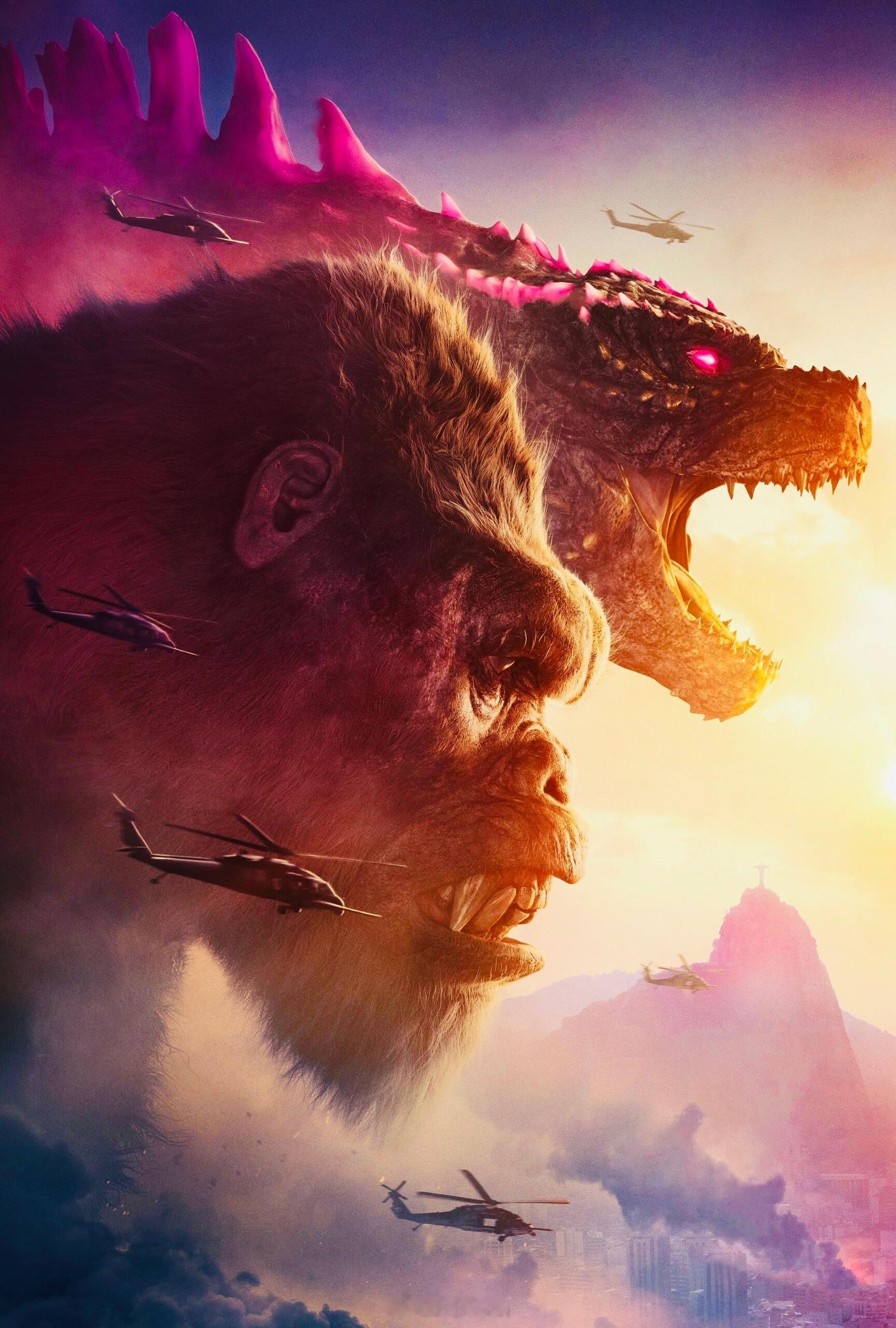 泰坦对决,红粉遇见金刚——【哥斯拉大战金刚2】,巨兽双雄壁纸,酷炫~🦖🦍💖⚡️