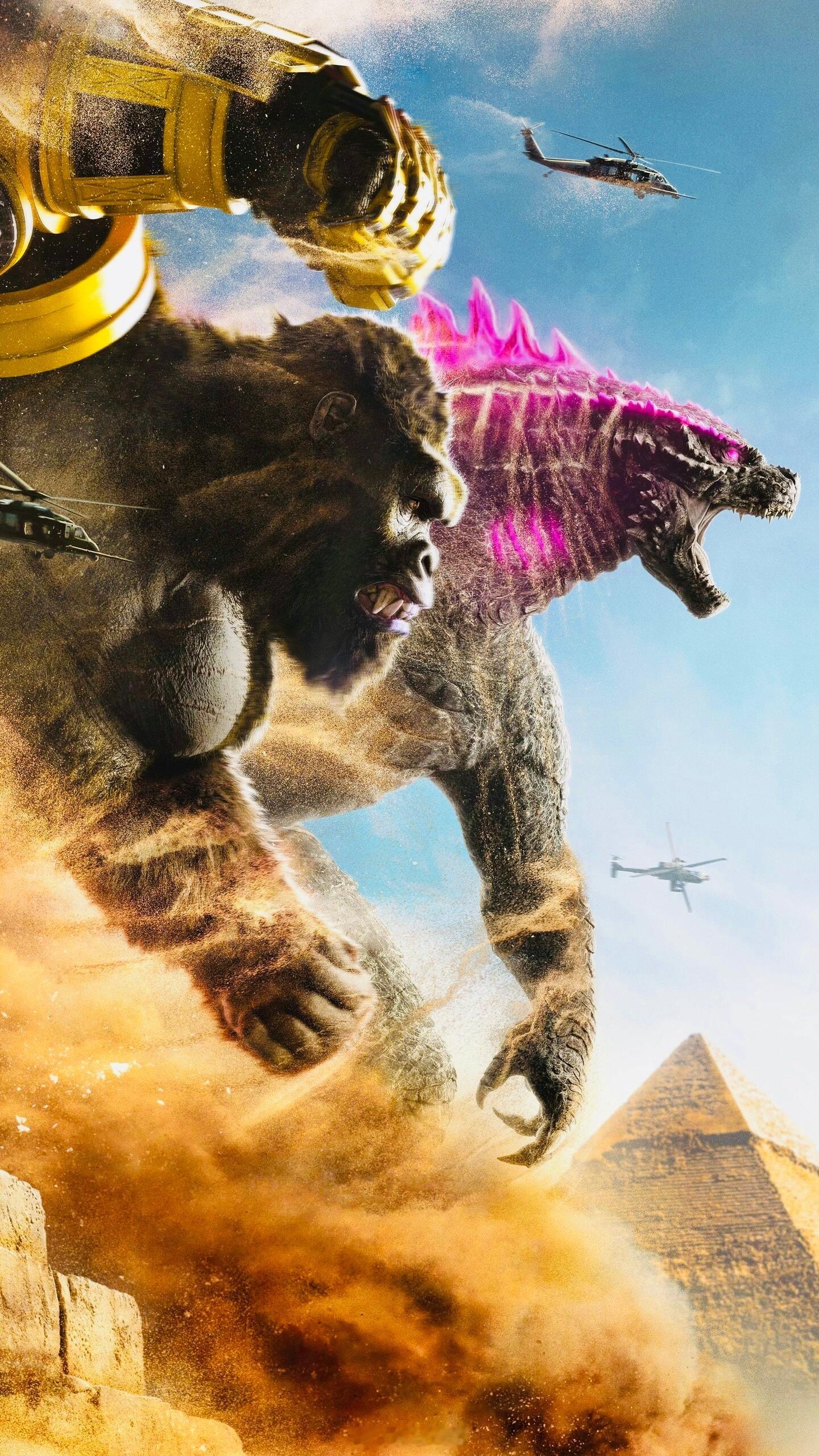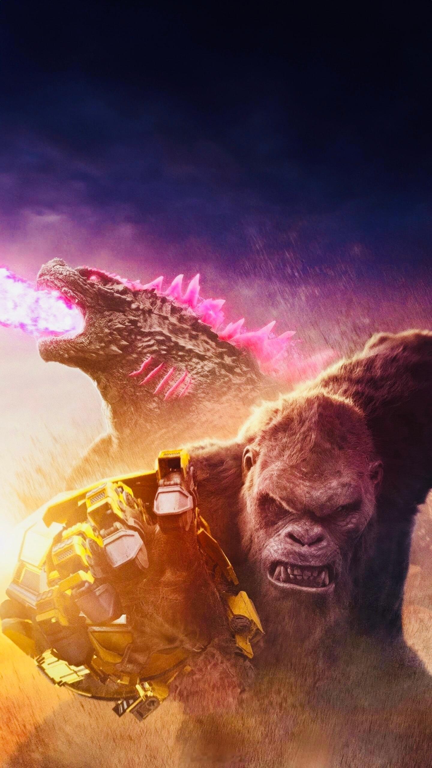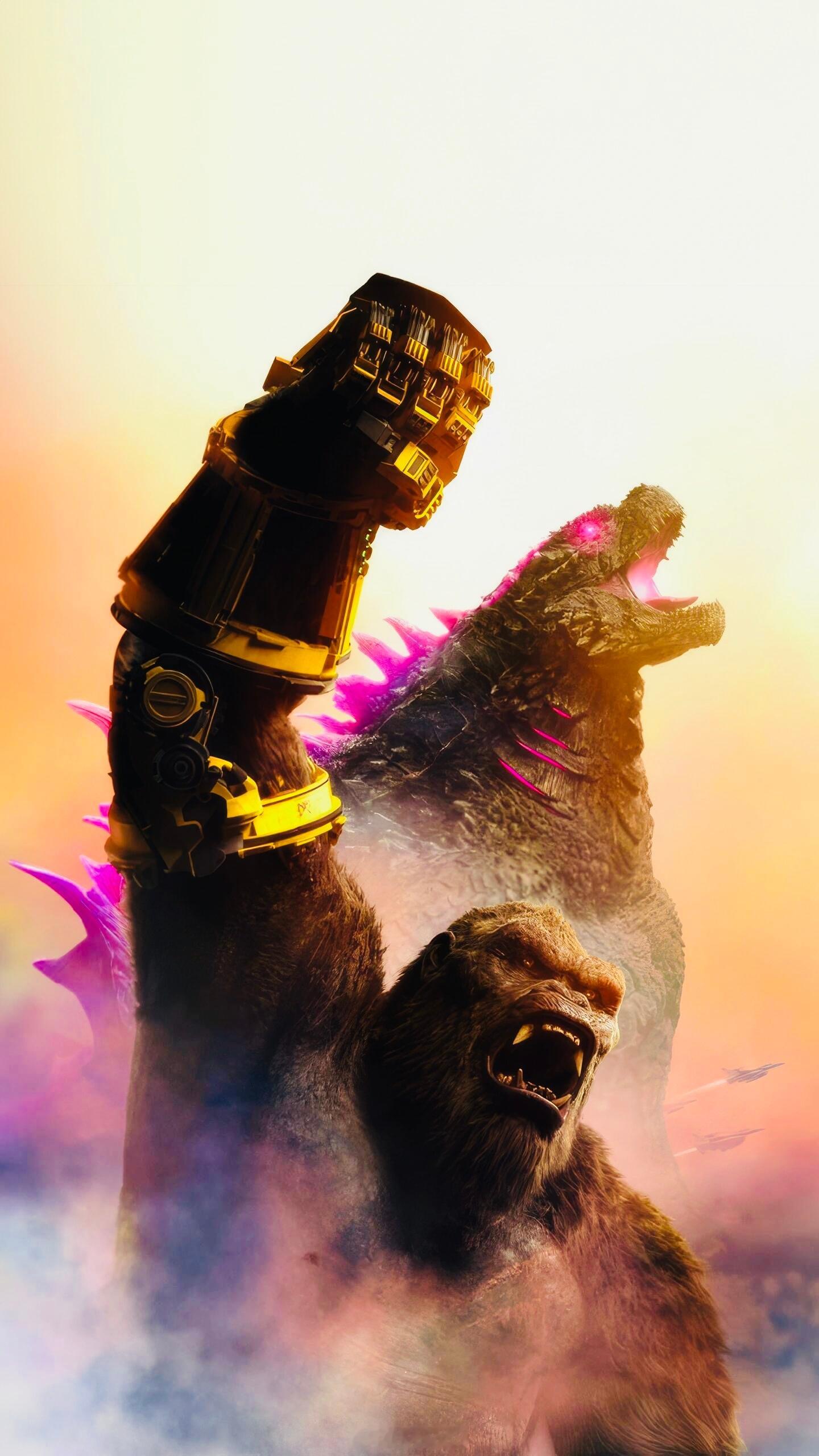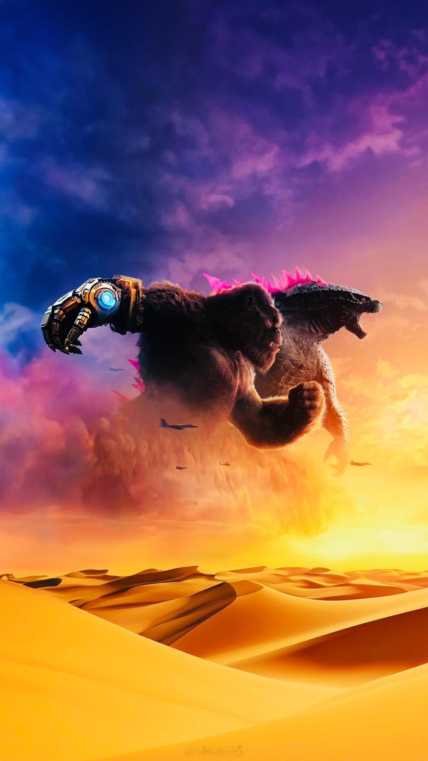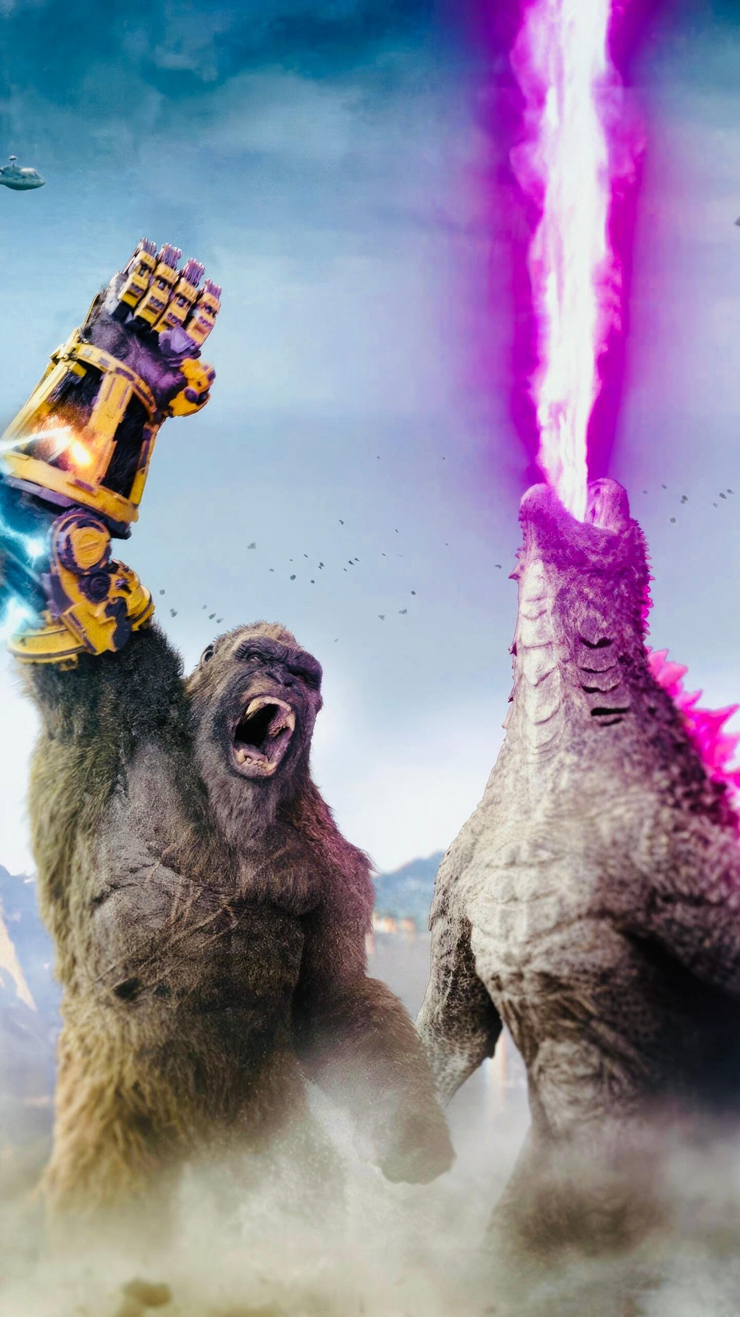 泰坦对决,红粉遇见金刚——【哥斯拉大战金刚2】,巨兽双雄壁纸,酷炫~🦖🦍💖⚡️