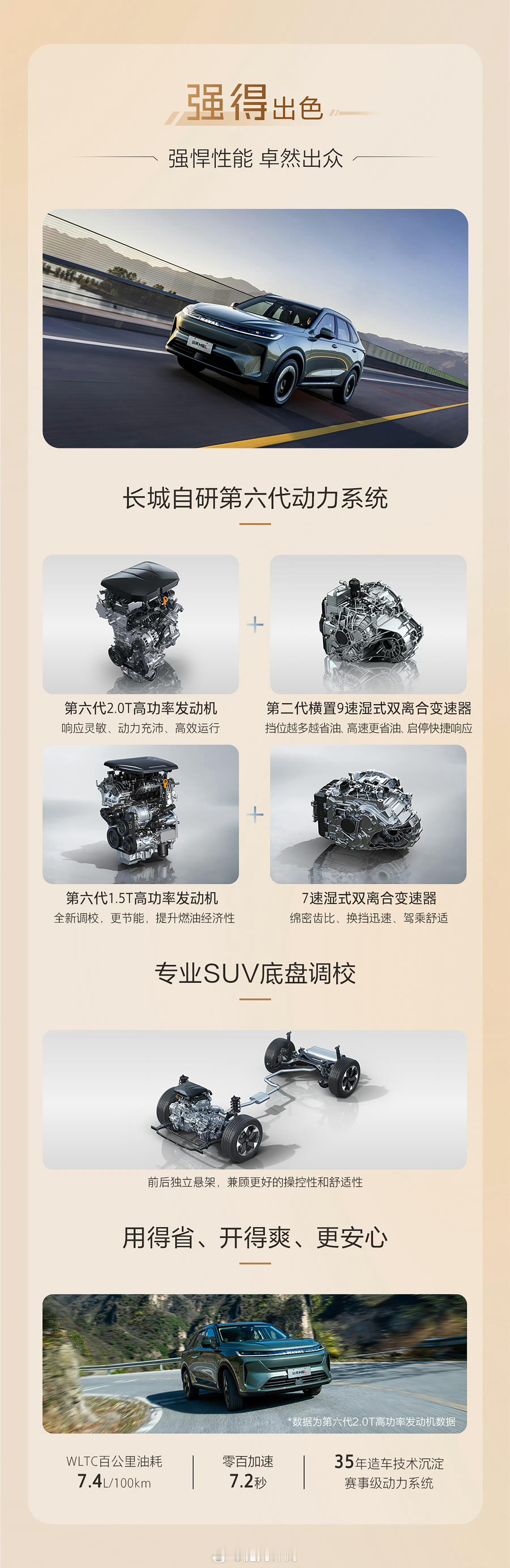 哈弗H6L价格给力!10.39万起,中型大五座SUV!2.0T动力,还有舒适性配置!配备9DCT湿式双离合变速箱,0-100km/h加速时间为7.2秒,WLTC百公里油耗7.4L。每公里大概5毛钱