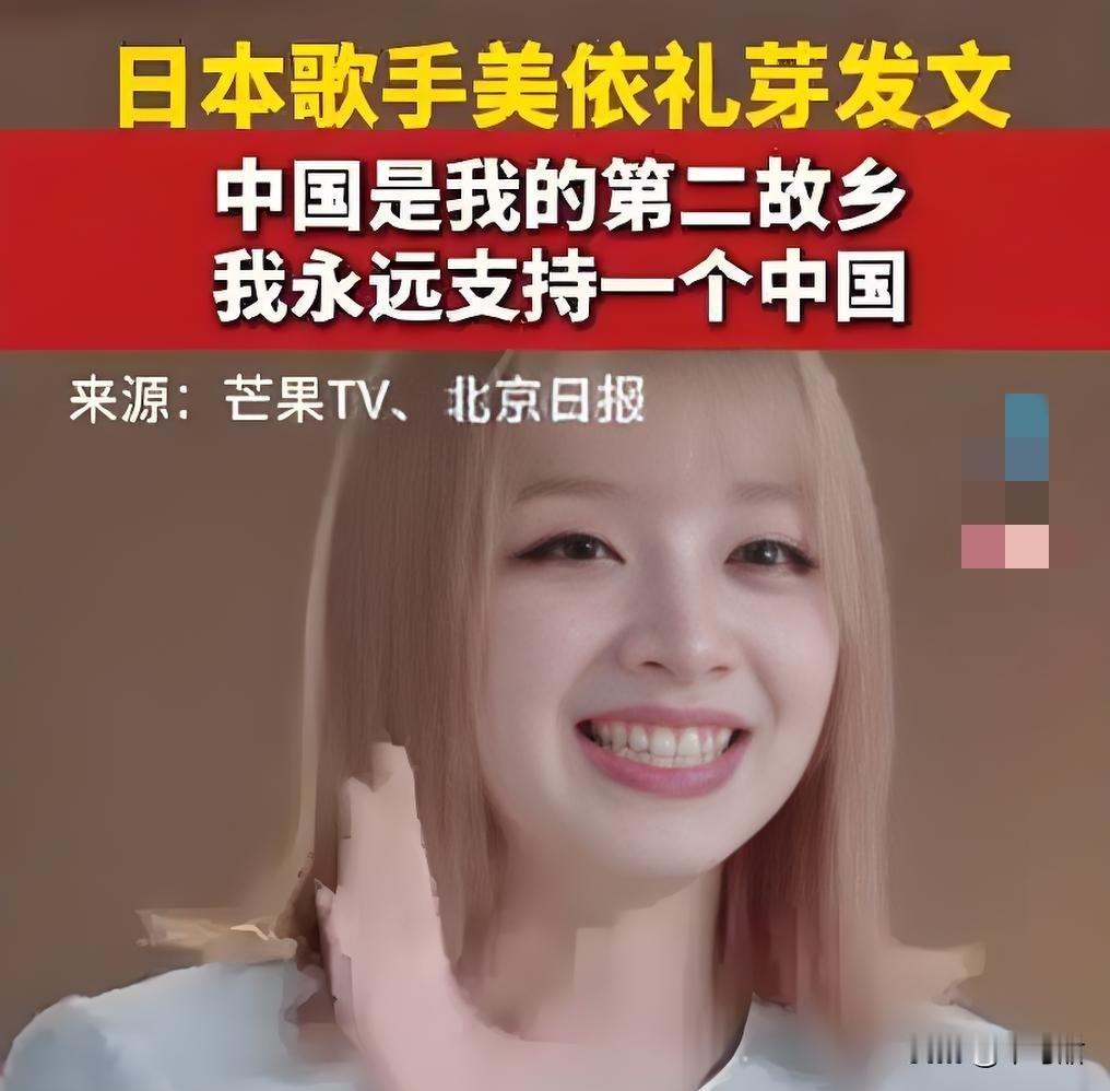 2025年11月18日,日本歌手美依礼芽一条“永远支持一个中国”的发声,在网络间掀起滚烫的共鸣。 IP地址显示她身处日本,恰逢中日关系敏感,备受关注的特殊时刻,这份不加掩饰的坚定立场,让无数中国网友由衷赞叹:“这份勇气,值得所有支持与点赞!” 难怪小美在中国的人气一直居高不下,不管是开演唱会还是上综艺,永远是座无虚席、话题度拉满!她早就说过,中国就是她的第二个故乡。 现在她刚单飞,正处于事业关键期,11月22号还要在北京开单飞后的首场大型演唱会,沉默避嫌明明是最稳妥的选择。但她偏不,不仅在微博说,还在外网同步立场,哪怕要面对日本国内的压力,也丝毫没含糊。 反观有些想赚中国市场钱的艺人,一边想捞红利,一边又不敢明确立场,含糊其辞的样子真的太掉价。 而美依礼芽用行动证明,中国观众的爱从来都很纯粹。音乐可能无国界,但艺人必须有立场!美依礼芽这波明辨是非、敢说敢做的操作,真的活该她火遍全网! (图片来自网络视频)