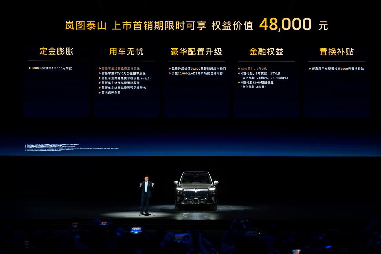 岚图泰山正式上市,37.99万元起,四款配置(含特别款黑武士版),完整覆盖了旗舰SUV在性能、豪华、智能方面的最领先技术。 作为岚图品牌最新的旗舰产品,岚图泰山搭载了非常多当下市场最新技术,尤其是与华为的深度合作,使其成为首款搭载乾崑智驾ADS 四激光雷达方案的车型,此外包括XPIXEL智慧大灯、鸿蒙座舱5.0,也都是当前华系SUV的最新技术。 颜值是第一要义。岚图品牌对中式美学的运用早已炉火纯青,放在体量感十足的岚图泰山,更是成为了当下豪华SUV的一个独特存在——不必复制“揽胜”、“库里南”,岚图泰山自有对中式豪华的理解。 这次推出的三款车型——MAX、MAX+、Ultra,定位也十分明确,37.99万元的入门款已经实现了豪华配置的满配,尤其是三腔空悬、EDC魔毯底盘,800V碳化硅平台,这次都让消费者可以完整获得岚图泰山的出色驾控性能,至于MAX+和Ultra版,则分别强化了豪华与智能,比如32扬声器的音响系统、双向16°后轮转向、华为四激光雷达。 个人认为,即便是最入门的MAX版也已经是非常值得入手的一款,在大空间和豪华感之外,岚图泰山没有放弃对驾控质感的坚持,使得这样一款大车同样具备转向灵活、底盘坚韧的特性,在舒适和运动之间找到平衡,这是岚图区别于其他华系SUV的优势所在。 如果你认同岚图梦想家的驾乘质感,那么岚图泰山的表现绝对有惊喜。【来自懂车帝车友圈】