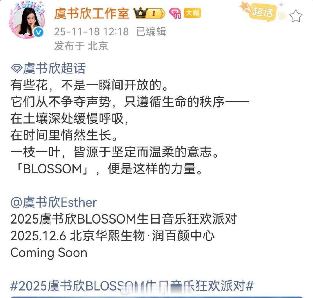 ⏰11月21日(大概率具体时间不清楚)2025虞书欣BLOSSOM生日音乐狂
