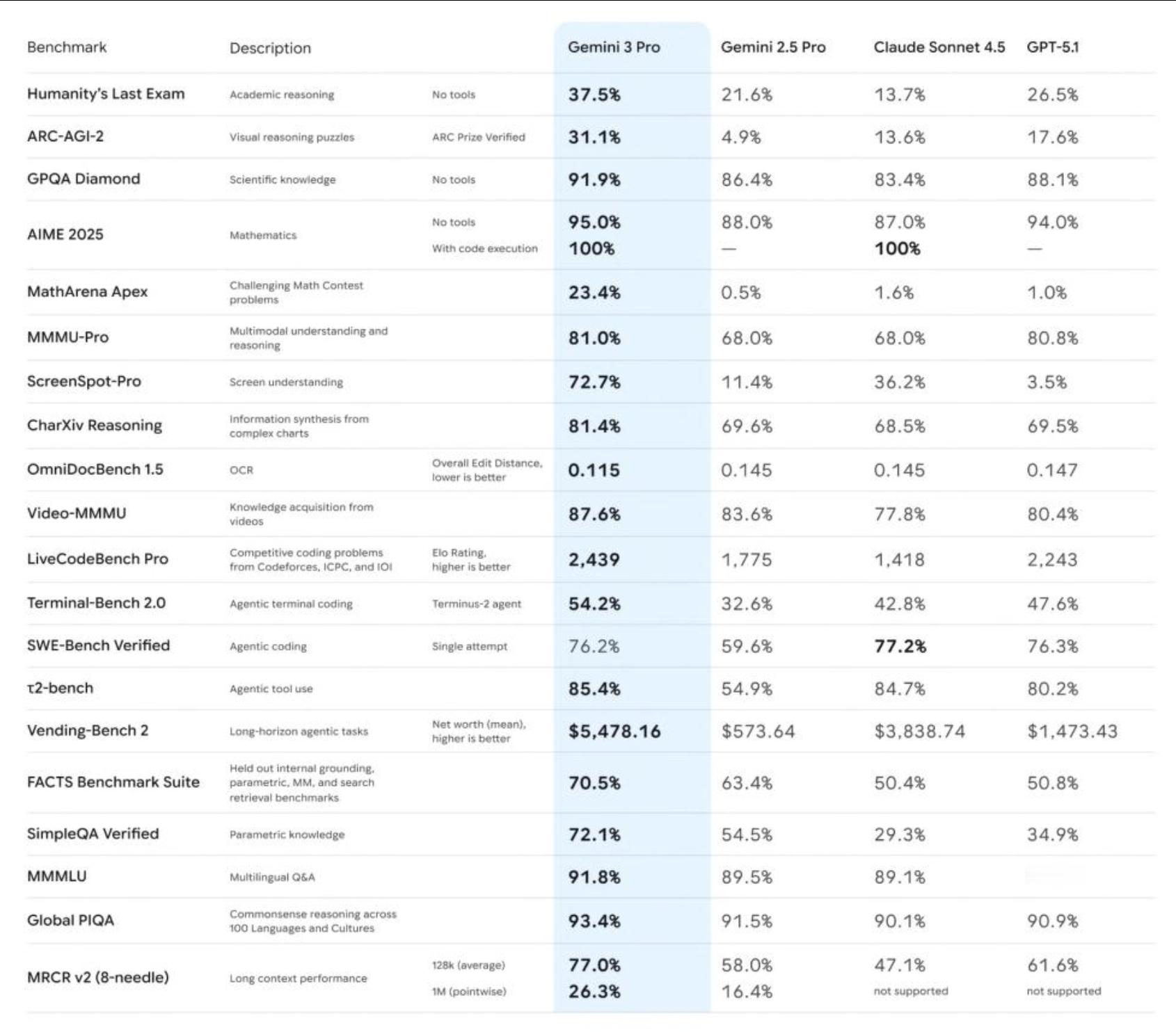 疑似Gemini3的模型卡曝光,跑分如图2不过其中有个很奇怪的组织Google Antigravity (反重力?),存疑