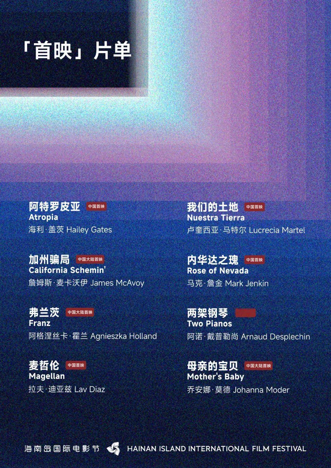 第七届海南岛国际电影节「首映」单元片单发布,所有影片均首次与内地观众见面。