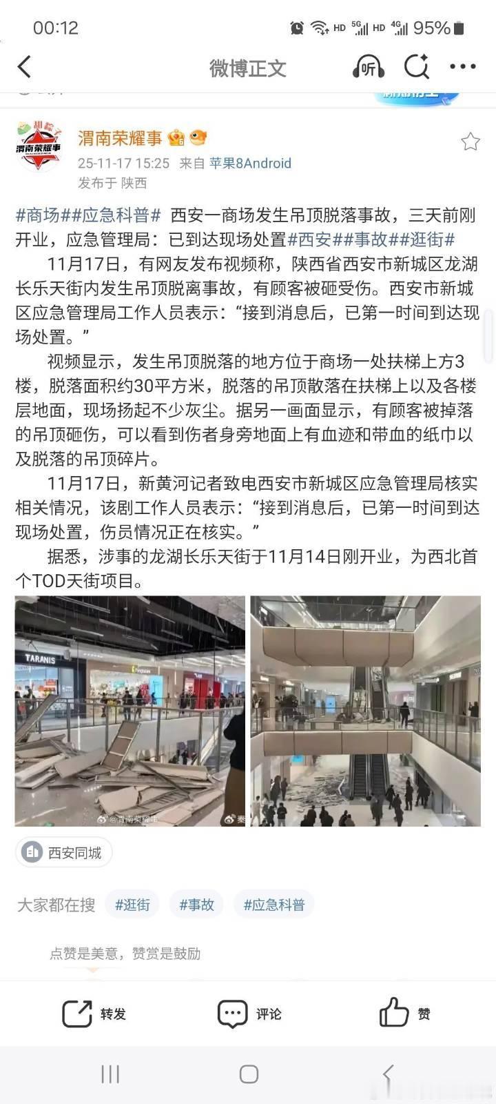 三天就“塌”房,龙湖天街的“开门红”砸到了谁? ——给“速成商业”的一封讽刺贺信 尊敬的龙湖长乐天街:见信如晤! 贵街11月14日“盛大启幕”,11月17日便奉上“高空抛物”彩蛋,仅用72小时完成从“西北首个TOD天街”到“西北首个‘塌’街”的华丽转身。如此高效,令所有“豆腐渣”同行望尘莫及。谨以此信,贺贵街以血肉之躯为《民法典》《安全生产法》《工程质量管理条例》等法律法规提供“沉浸式案例教学”,功德无量!开业即“开砸”,法律成了摆设?《民法典》第1253条白纸黑字:建筑物、构筑物或者其他设施及其搁置物、悬挂物发生脱落、坠落造成他人损害,所有人、管理人或者使用人不能证明自己没有过错的,应当承担侵权责任。——贵街倒好,直接把法条变成“使用说明书”:吊顶脱落、顾客见血,30平方米的天花板说掉就掉,仿佛提前排练过“精准打击”。不知贵司的“无过错证明”是否也随吊顶一起散落一地?image 三天速成,监理是“睁眼瞎”还是“闭眼签”?《建设工程质量管理条例》第36条要求监理单位“对施工质量承担监理责任”。贵街从竣工到开业,节奏快过网红奶茶店,监理工程师怕不是把签字笔绑在无人机上,隔空“云验收”?须知,吊顶不是吊灯,它不会“自适应重力”,30平方米的整体垮塌,绝非一颗螺丝的“抑郁”,而是整个系统的“自杀”。监理报告里但凡有一句真话,也不至于让“开门红”变成“开颅门”。应急局“第一时间到场”,早干嘛去了?《安全生产法》第9条赋予应急管理部门“预防、检查、执法”之职。贵街开业前,新城区应急局是否来过?若来过,为何看不出“头顶炸弹”?若没来过,是“双随机”没抽到,还是“双闭眼”更省事?如今“第一时间到场”救伤洗地,倒不如说“第一时间到场”拍照留痕,毕竟“善后”比“预防”更容易写总结。imageTOD模式?不,是“TMD”模式!贵街自我包装为“TOD(Transit-Oriented Development)”标杆,如今看来,字母得重新排列:T:Tofu(豆腐)M:Mud(泥浆)D:Drop(坠落)合起来正是“TMD”——以豆腐渣工程、泥浆般监理、高空坠落体验,三位一体,完美诠释“速成商业”的底层逻辑:“先圈钱,再圈尸。”伤者血流满地,公关稿“云淡风轻”?网传视频里,顾客头顶鲜血、地面纸巾猩红,贵街官微却至今静音,仿佛掉下来的不是天花板,只是“一片雪花”。建议公关团队直接抄作业:“因天气干燥,吊顶轻微情绪波动,已安抚。”“伤者情绪稳定,血迹为行为艺术。”——既省字数,又显“高端”。image给监管的一记耳光:罚酒三杯,下次还掉!《安全生产法》第114条:情节特别严重的,对单位最高可罚1亿元,对责任人可追刑责。但过往案例告诉我们,类似事故的结局往往是:“整改—罚款—下不为例—下次还犯。”若此次仍以“临时工操作不当”“螺丝钉失恋”收场,那便不是吊顶脱落,而是法律尊严碎了一地。别让“天街”变“天坑”龙湖长乐天街,你们用三天时间给古城西安送上了一份“血包大礼”,也给全国“速成商业”敲了一记丧钟。下一次,当你们再高举“TOD”“首店经济”大旗时,请记得:消费者要的是“首店”,不是“首砸”;要的是“天街”,不是“天坑”。若仍执迷不悟,那便祝贵街早日推出新IP:“西安之眼”——抬头即可看见天花板外的天空,附带真人逃生体验,票价随缘,命大者免单。此致“砸”安!2025年11月18日