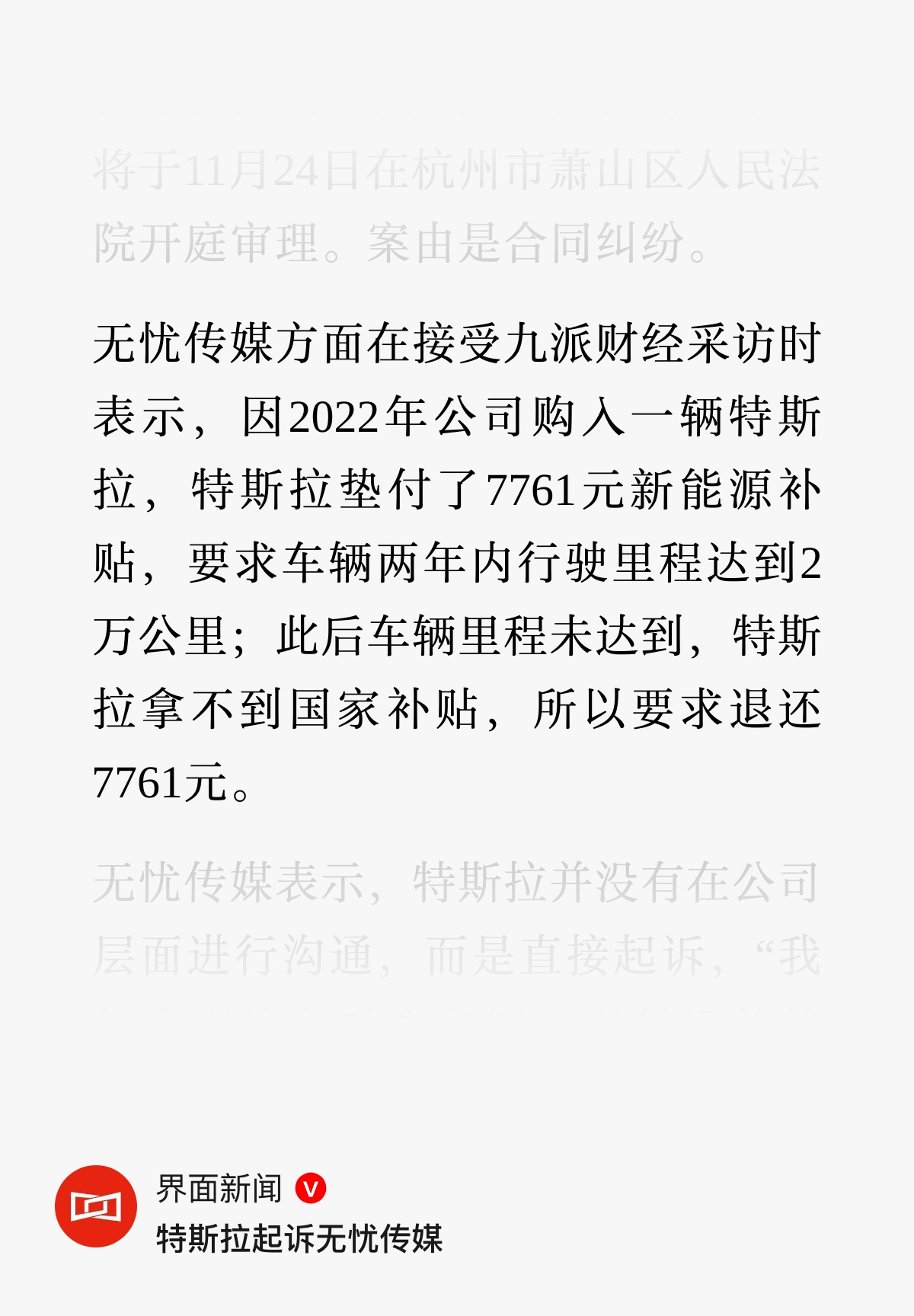 特斯拉起诉无忧传媒,这事儿居然没啥关注度。据说这事儿跟车无关,而无忧传媒拥有庞大