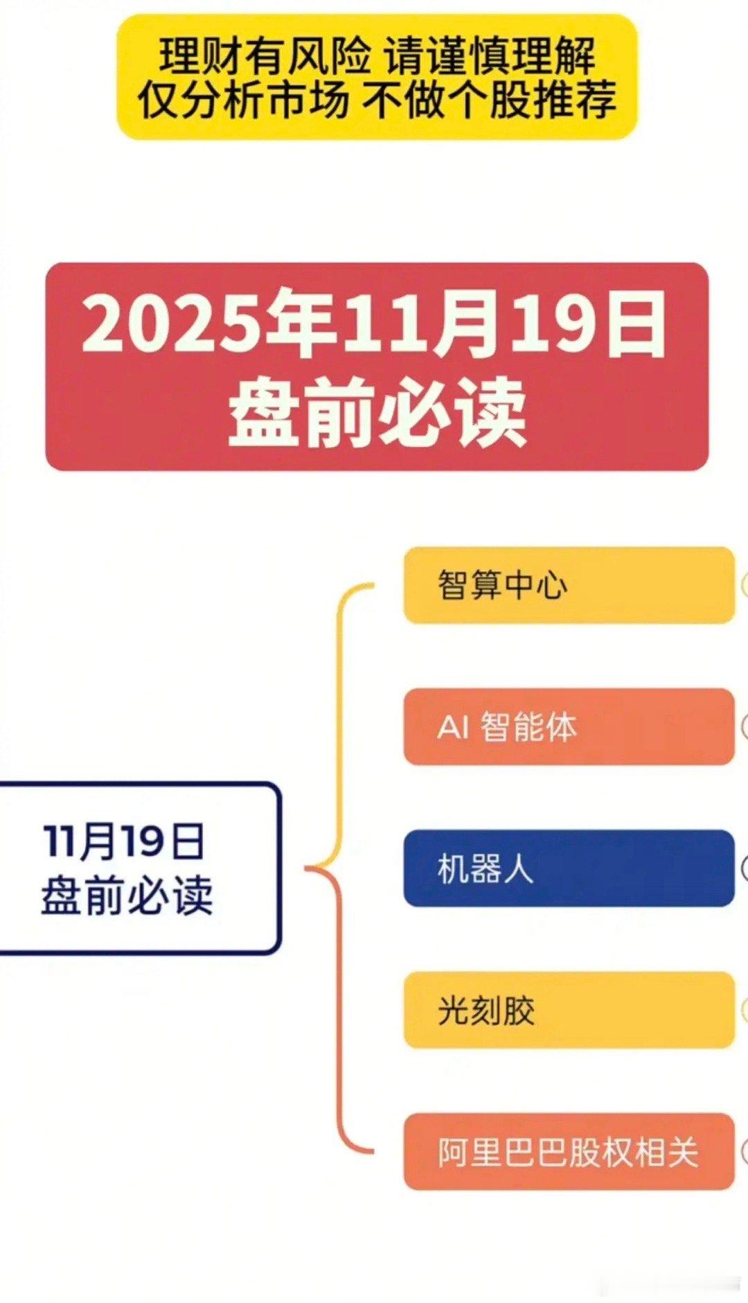 11月19日周三 盘前必读!1.智算中心2.人工智能,Ai智能体3.机器人4.光刻机光刻胶5.阿里巴巴股权相关