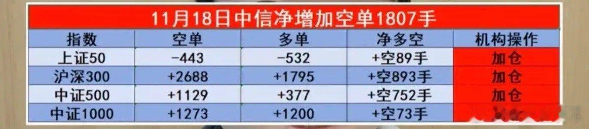 11.18周二晚间 利好消息终于来了!中信中幅加仓了!最新期指数据来了!中信净增加空单1807手从期指数据看:大盘下跌,中信加仓,说明至少可以看一个反弹,且大盘15分钟底背离,有反抽需要。不作为投资买卖建议,仅供参考
