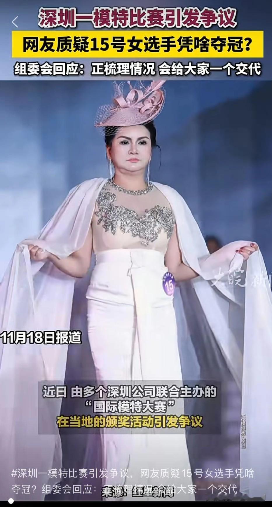 深圳一模特比赛引发争议,网友质疑15号女选手凭啥夺冠?组委会回应:正梳理情况 会给大家一个交代