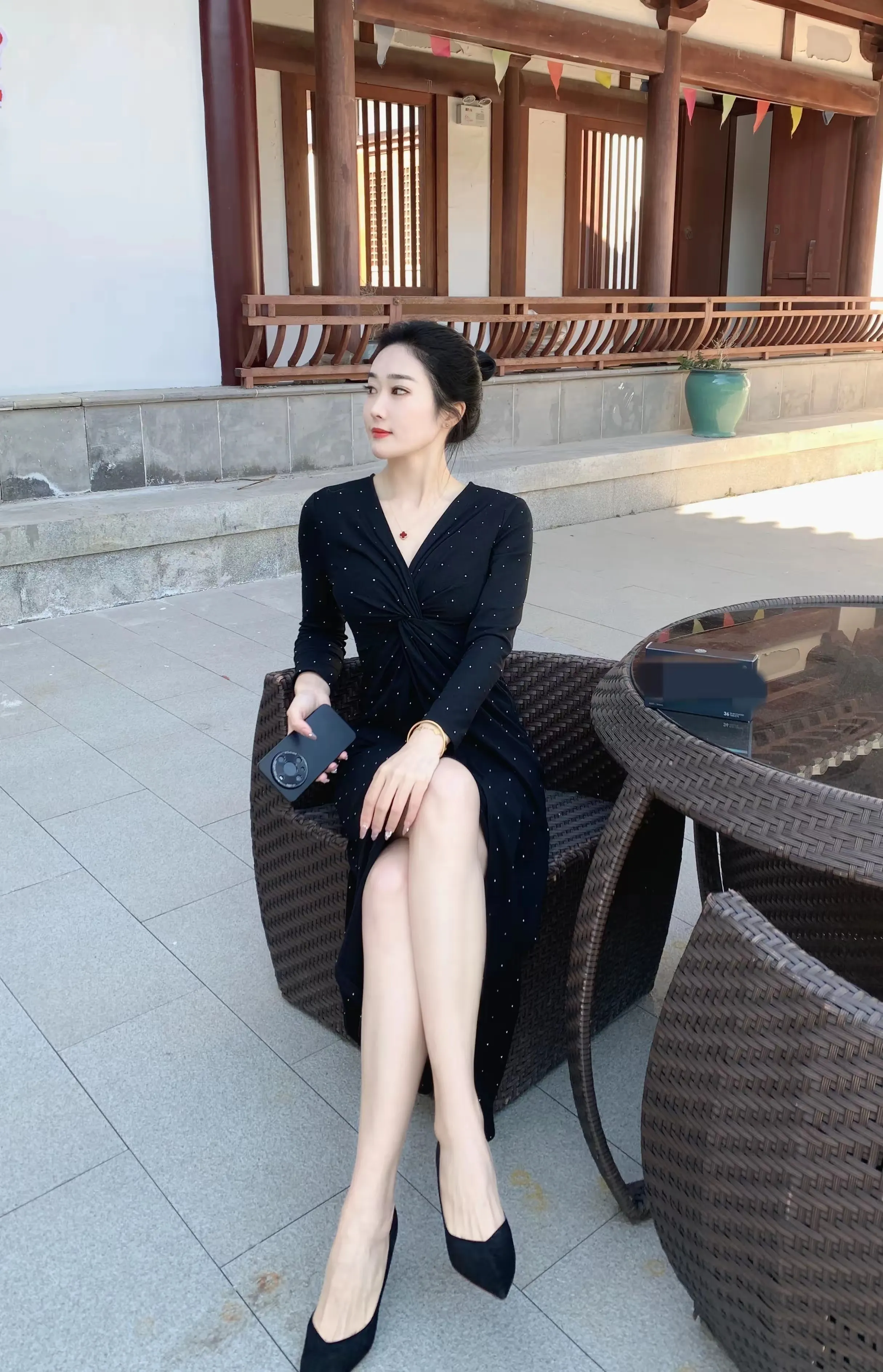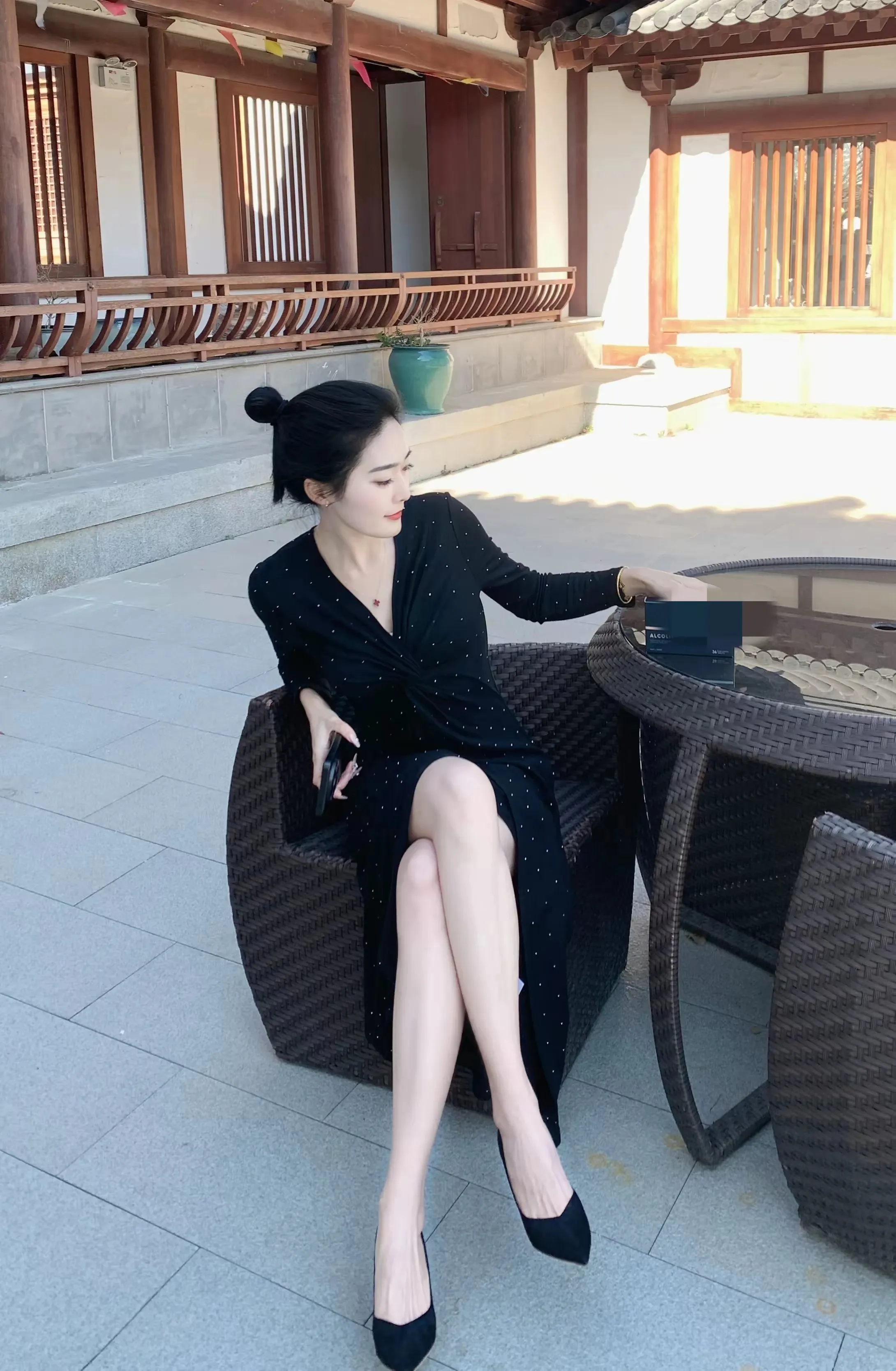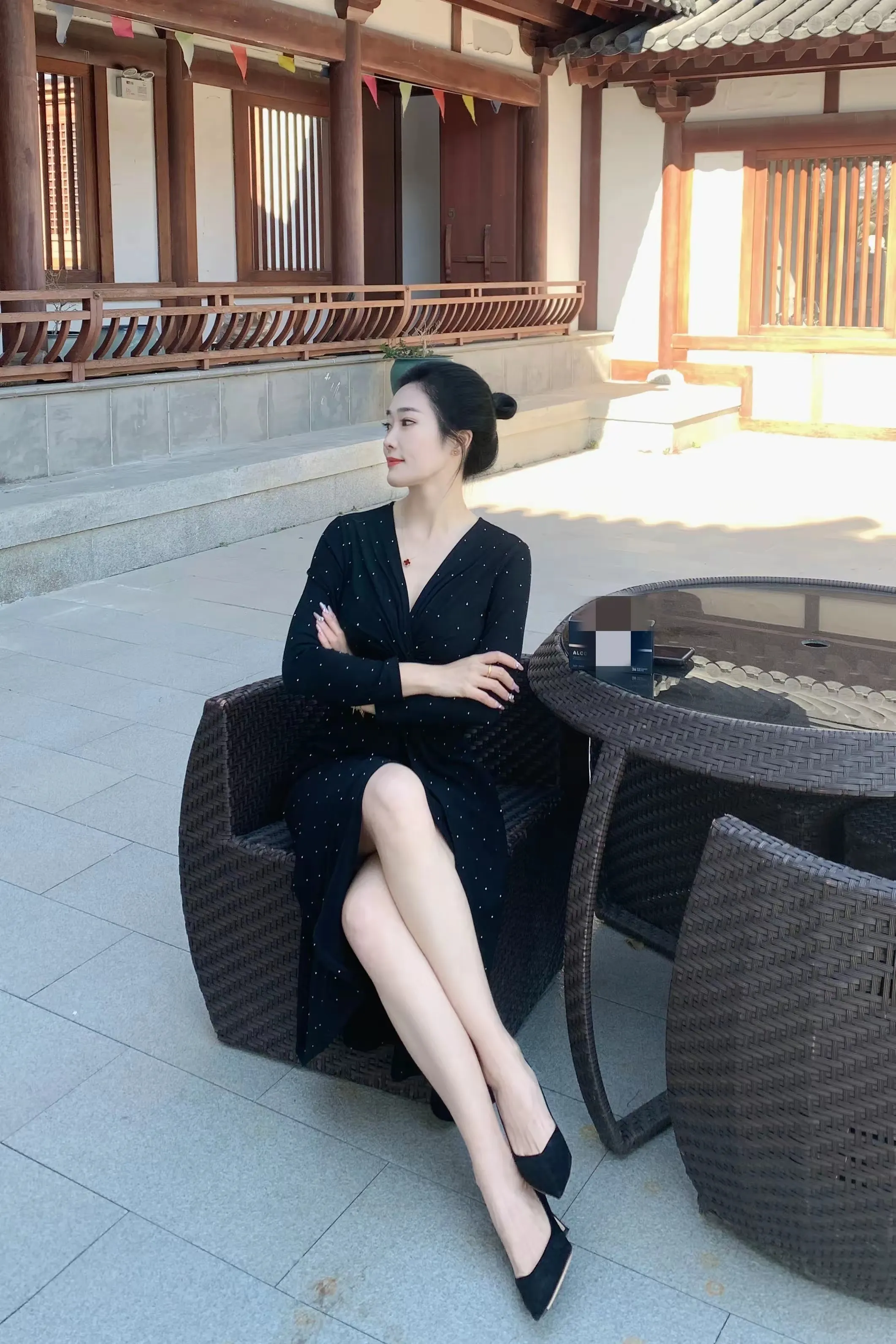 优雅黑裙少女,静坐庭院,时光静好。🌸知性美茜然 风韵女神美身姿 知性优雅写真 高贵小姐姐 写真美女。 [作揖][作揖]🍃
