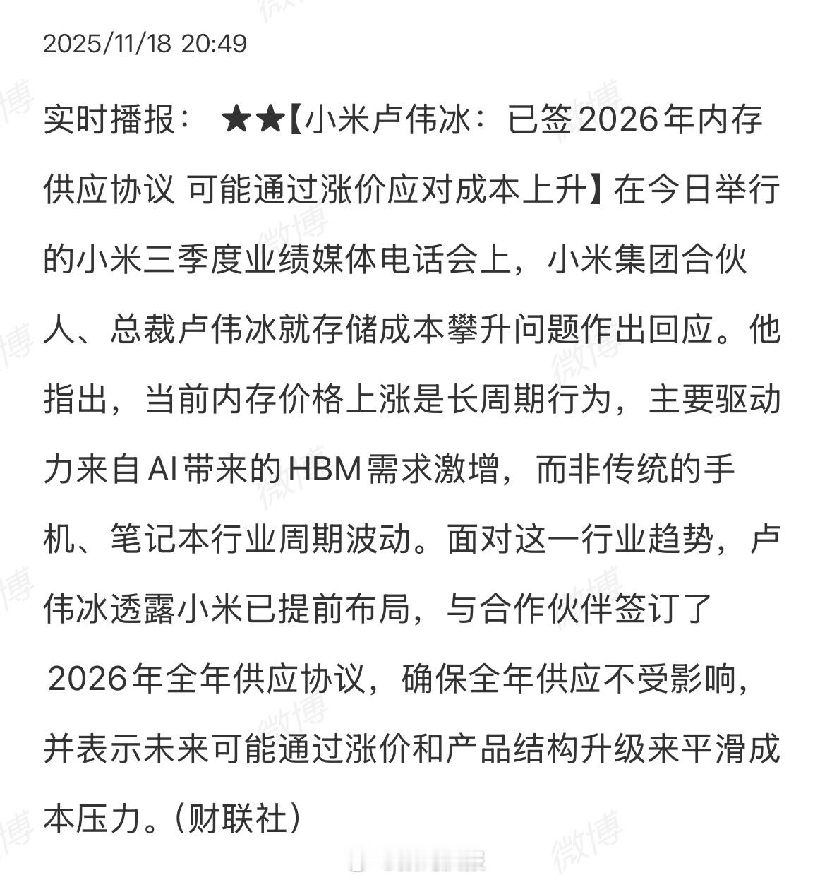 卢伟冰:未来可能通过涨价和产品结构升级来平滑成本压力。