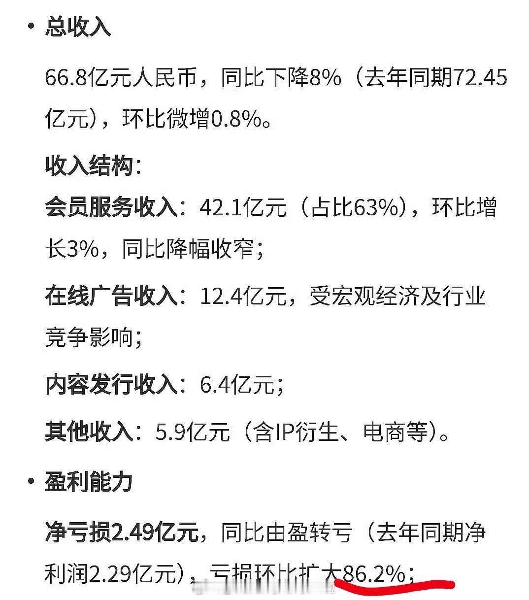 🥝三季度亏损环比扩大86.2%,其实看三季度播剧榜🥝已经算播得比🐧👖好了吧
