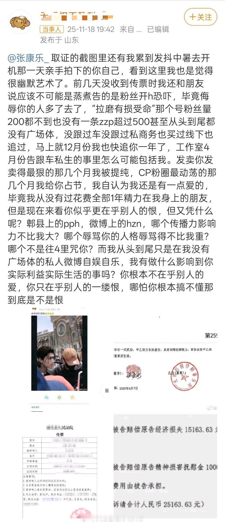 张康乐粉丝(其实算辱追粉)发博说自己被张康乐告了(被判赔偿2.5w),意思说有点委屈觉得自己粉过张康乐,骂的影响力也不大,只能说所有辱追型粉丝引以为戒