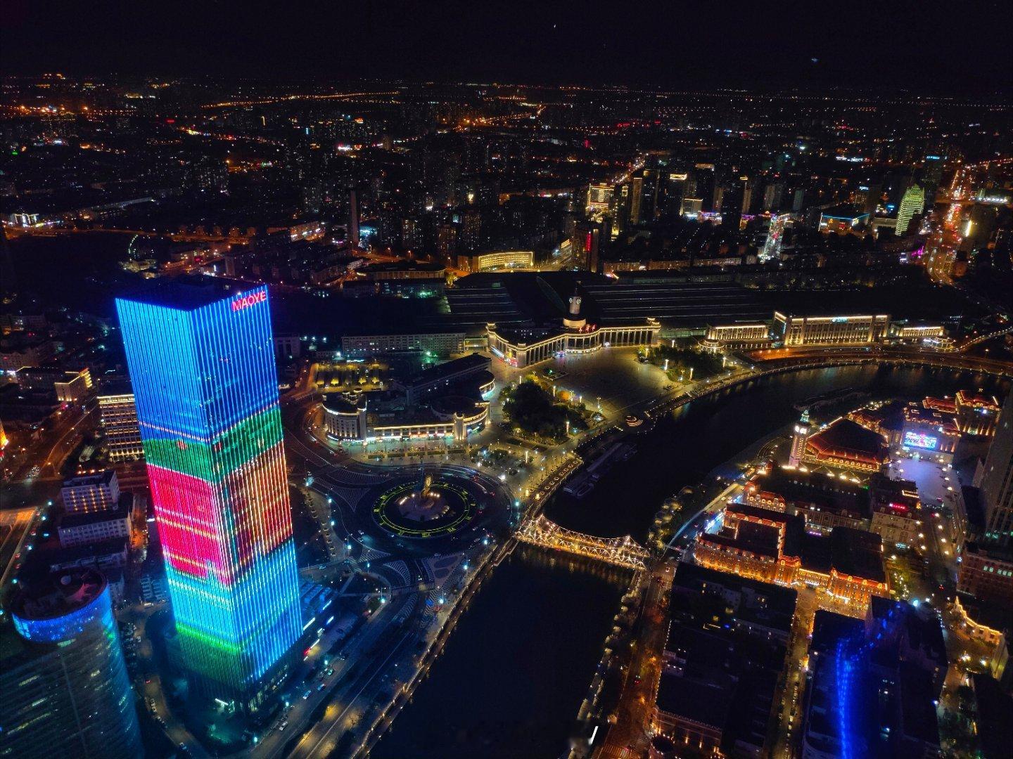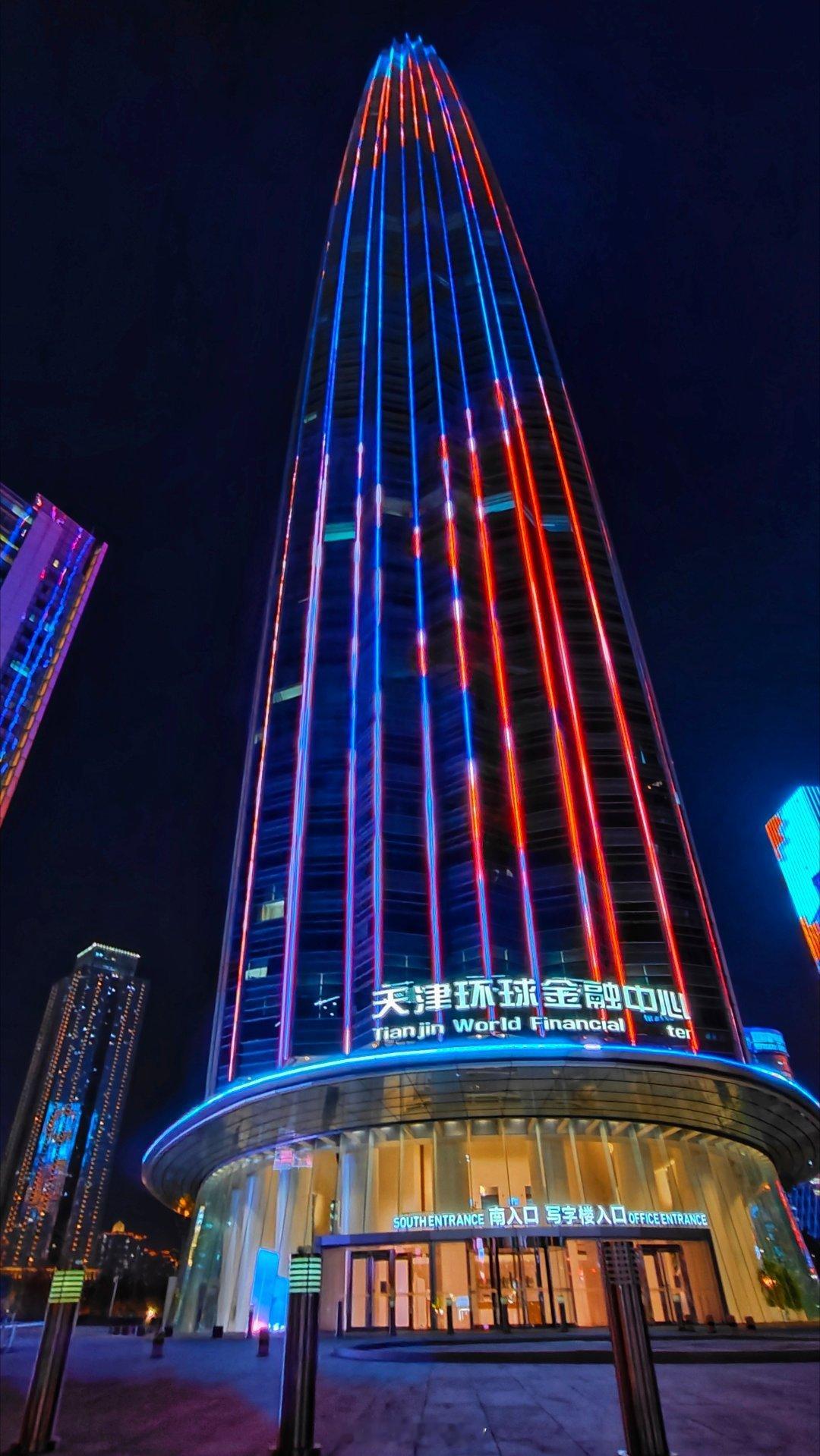 很多人都知道来天津要坐一次天津眼,但是我跟大家说,来天津更要登一次天津之心!天津之心,就是天津环球金融中心,建筑高度336.9米,乘津塔观光厅电梯,急速攀升至79层,电梯门开启,眼前豁然开朗。在336.9米高空,“天津之心”如同悬浮于城市上空,透过360度环形落地窗,津城盛景一览无余。海河宛如玉带环绕,五大道的红顶洋楼群落、解放北路的金融建筑群尽收眼底。这也是华北地区首个300米以上高空观景平台,汇集“高空观景+文化磁场+城市客厅”等多元功能元素,今年6月份刚刚开启。现在上面还有天津天际线的摄影展,非常不错
