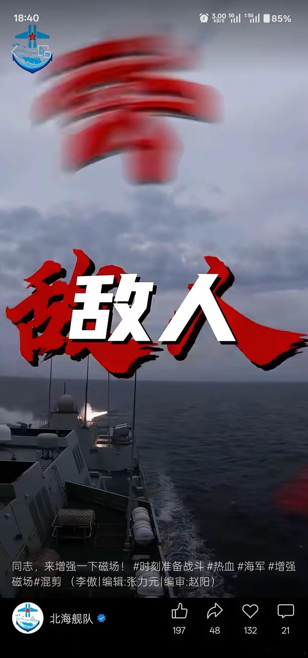 中部空军和北海舰队霸气喊话:枪已上膛剑已出鞘,我们时刻准备打胜仗!11月17日,中部空军发布视频:枪已上膛剑已出鞘,我们时刻准备打胜仗!同时,北海舰队官号,也发布视频,视频配音也是类似意思,我已经把子弹推上膛,时刻准备战斗!意思已经非常明确,各战区部队都已经准备好了,随时能战,只待一声令下,全军出击!必将一切挑衅者消灭!大家觉得呢?评论区说说你的看法!