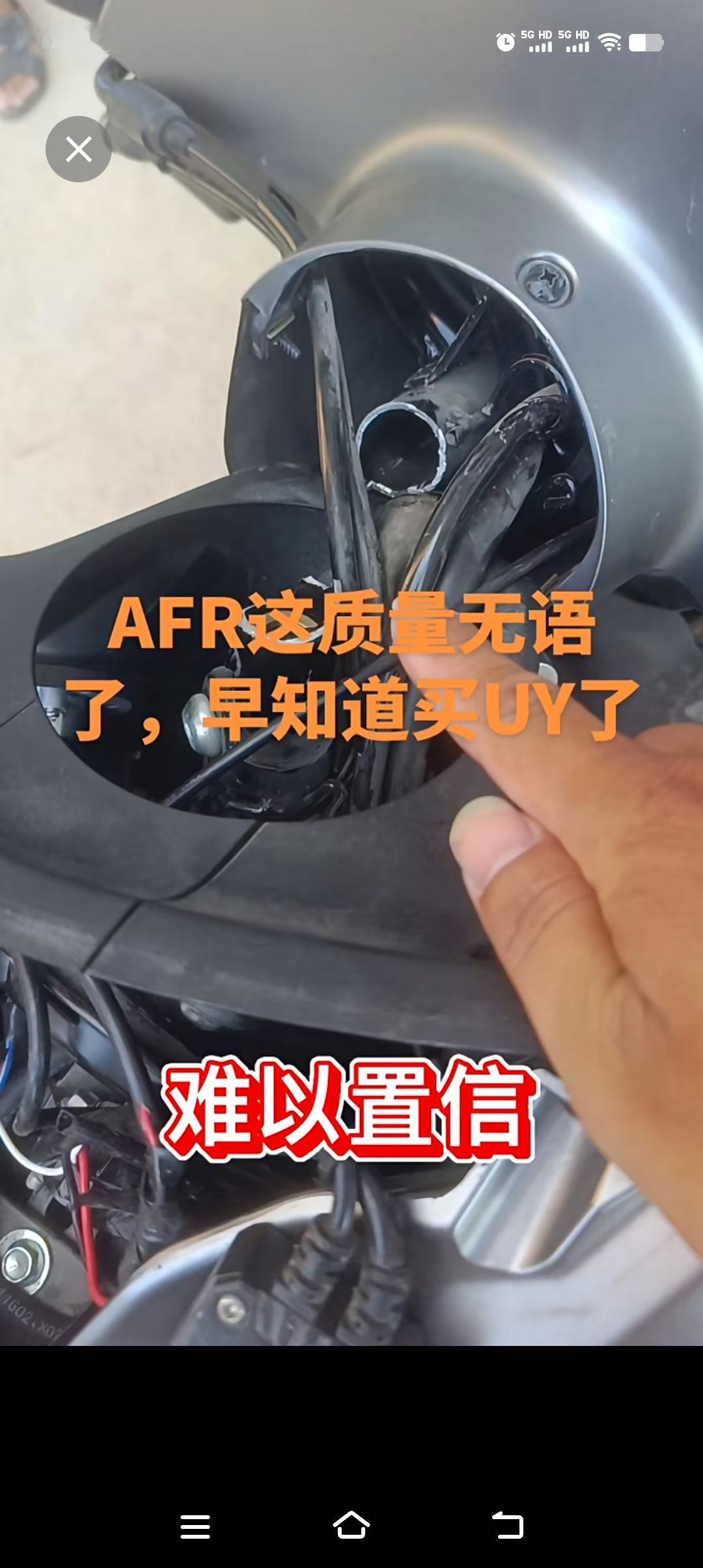 现在的水军真的是无法无天了,为了诋毁对手真是无所不用其极。 刚才刷到一条视频,标题是AFR这质量无语了,早知道买UY了。这是哪家的水军应该不言而喻,再来讨论一下水军黑的水平。 虽然发布者刻意加上字幕而且不拍特写,但作为一名专业维修摩托车32年的一线员工,可以肯定的说这是一起标准的恶意造谣。 首先,通过把管的截面我们可以明显的发现,一边非常平整,一边有不规则的断裂表现,而且整个断口材质颜色新鲜一致,没有任何锈蚀和旧茬。很明显,这是先用锯子割了一部分,然后再故意掰断,进而用来给品牌抹黑。 作为一名行业内工作人员,我想说的是,这些水军真的是黑到家了,有这个精力把质量做好,请水军抹黑对手让人一辈子瞧不起!