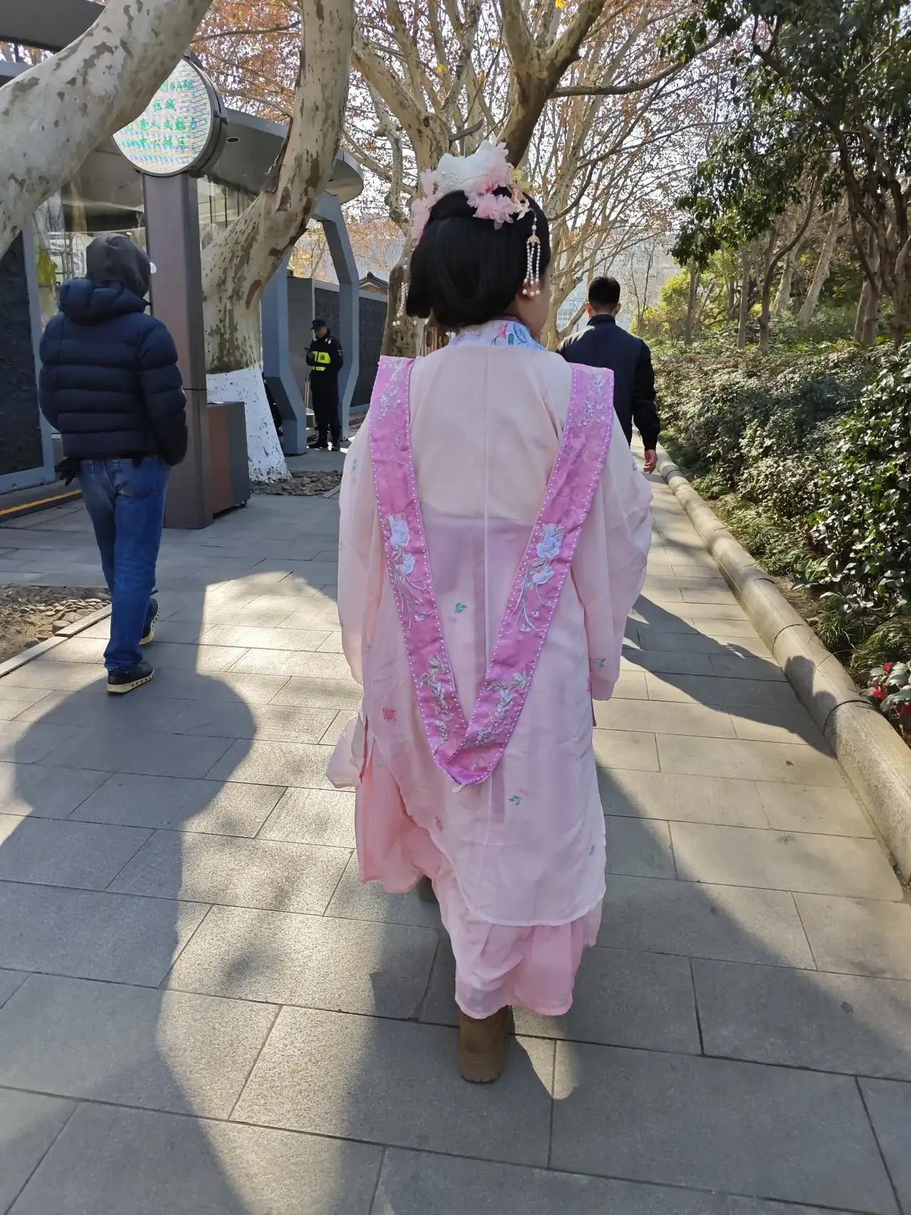杭州西湖永远都是热闹非凡,人潮涌动。无论春夏秋冬还是酷暑严寒。 今天的杭州最低温度已经到了3℃, 可这位小姐姐依然穿着单薄漂亮的汉服在风中凌乱,丝毫不理会凛冽的寒风。 再看看旁边的男士们已经穿上羽绒服,看来女人永远都在展示自己的美,跟年龄无关!