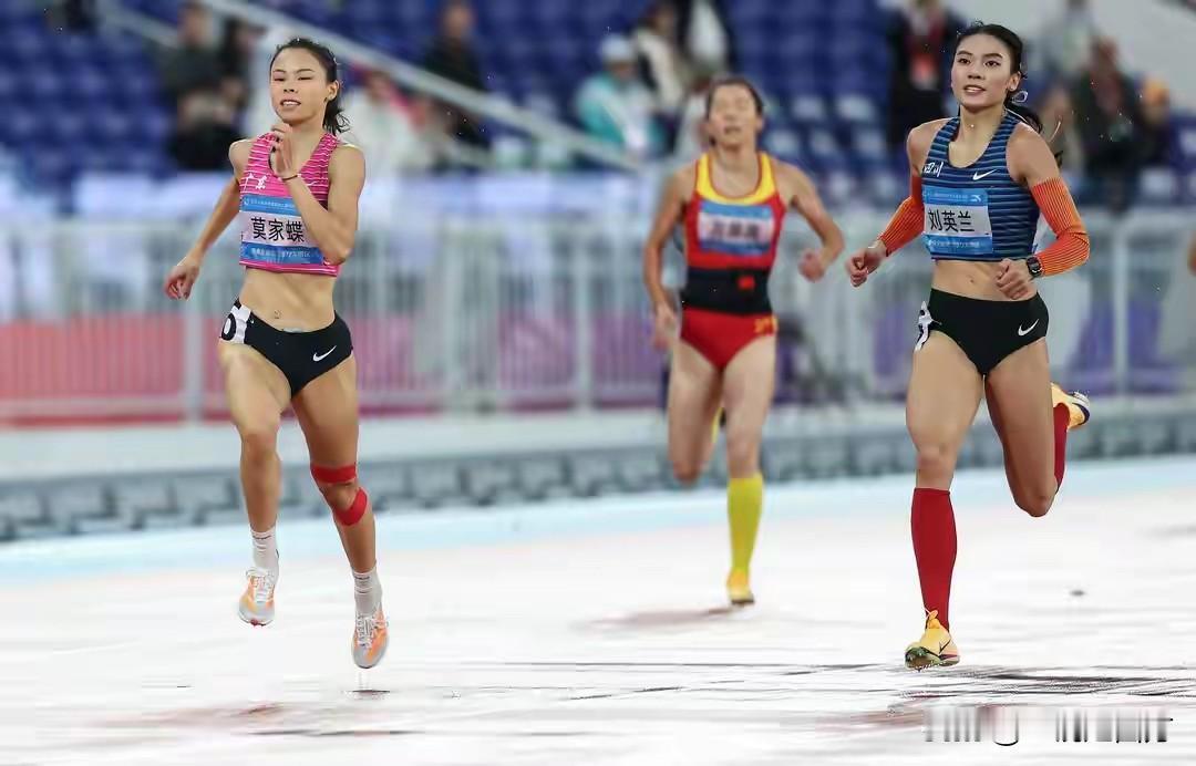 第十五届全运会女子400米决赛,四川队的刘英兰与广东名将莫家蝶再次展开直接对话,在首日进行的男女4×400米混合接力末棒,两人在冲刺阶段就展开激烈较量,刘英兰险些反超领先的莫家蝶,最终莫家蝶守住优势拿到冠军,接着又轻松赢得主项400米栏的冠军,她一定很希望在400米冲击个人第三冠,之前在各项全国比赛中,她包揽400米和400米栏双冠几乎成了常态。但这次,上个月刚满20岁的刘英兰发挥更好,她在最后冲刺阶段超越莫家蝶,以51秒75的个人最好成绩夺得冠军,莫家蝶以51秒87获得亚军,也已十分接近自己的最好成绩51秒74,广西队的李凤丹以53秒30获得季军。