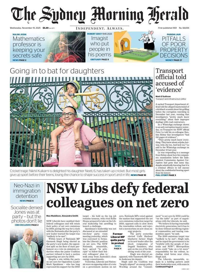 《悉尼先驱晨报》头版报道称,有人说板球🏏就海外印度裔人的“命根”,也是印度国球。因此照片显示,为女儿们挺身而出 。一位印度裔澳大利亚人的板球爱好者尼基尔·库尔卡尼很高兴他6岁的女儿妮蒂开始打板球了。但大多数女孩在十几岁之前就放弃了运动,失去了在体育和生活中塑造成功的机会。 由于澳大利亚的印度裔越来越多,因此板球与澳式橄榄球成为本地最受欢迎的体育运动。