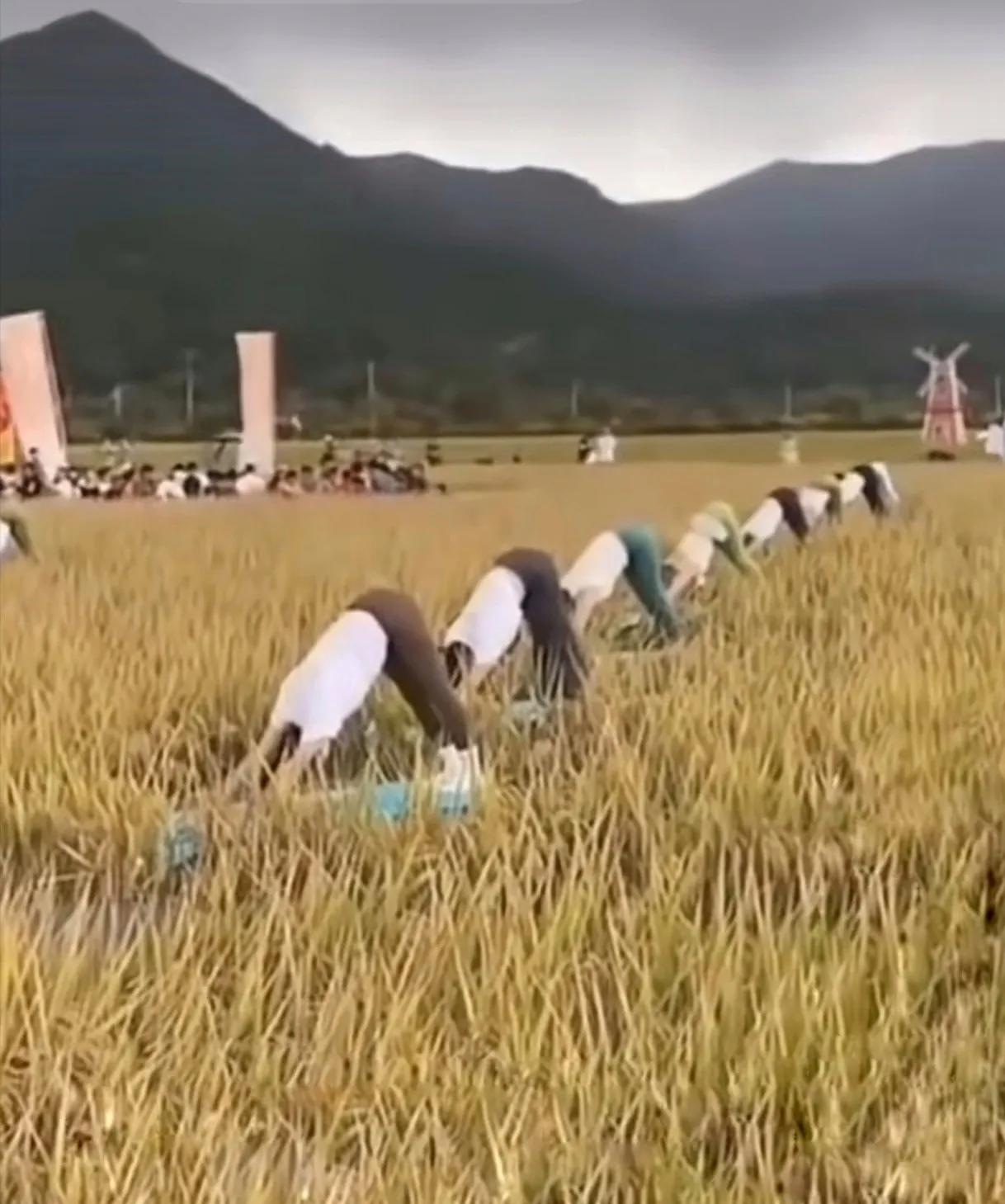 割稻子与瑜伽,似乎不沾边!但这个地方偏偏让两者扯在一起!10月18日,浙江象山县汤岙村举办“开镰仪式”,竟然上演“众美女在稻田中间表演瑜伽”!要知道,每一粒稻谷都是农民辛辛苦苦种出来的,现在这样表演,是否存在踩踏稻谷、浪费粮食的情况?主办方没有考虑后果吗?在稻田外围表演不行吗?