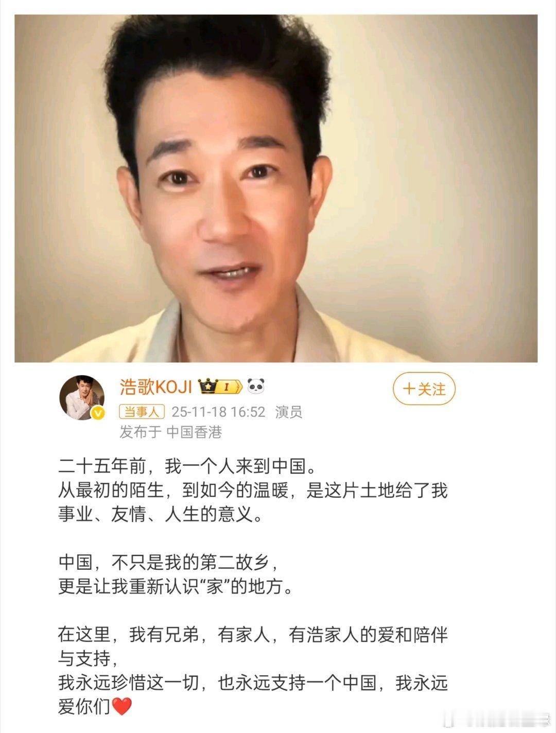 日本演员矢野浩二发微博表态,走心发文称中国是自己的第二故乡,自己永远珍惜这一切,永远支持一个中国!矢野浩二还晒了一张自己年轻时的旧照,照片中他在小巷子里席地而坐,背后还有小吃店的手写菜单,看起来满满的年代感和烟火气息!矢野浩二的文字写得好真诚,看得出来他是真的喜欢中国,评论区的网友们回复也很暖心!