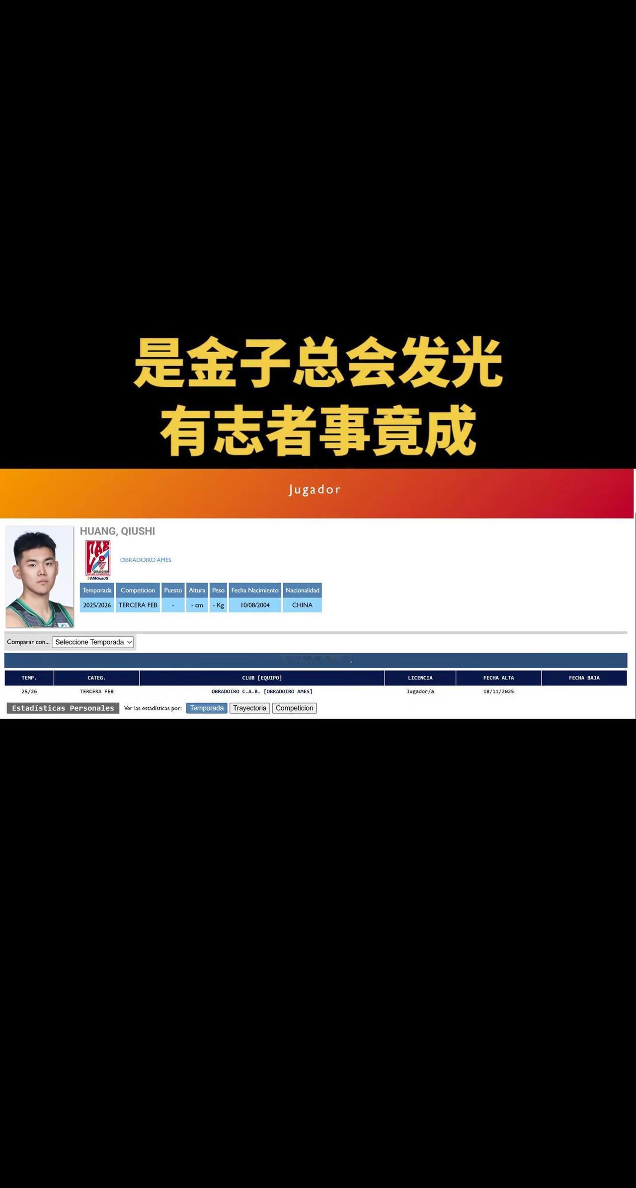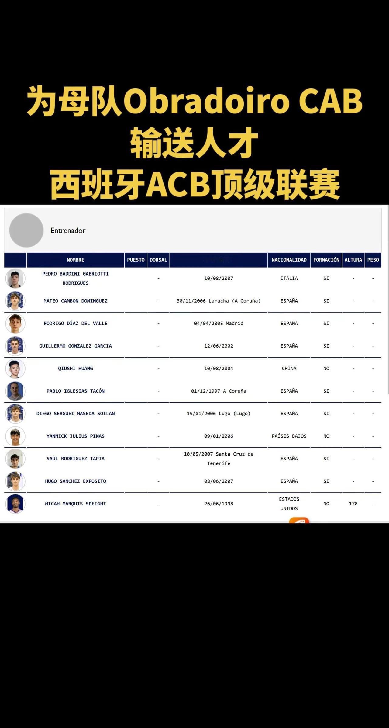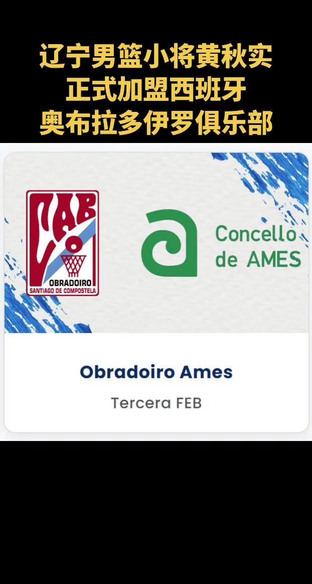 辽宁男篮小将黄秋实正式加盟西班牙俱乐部。将和辽宁队友张峻豪一起征战西班牙联赛!三年后,荣归故里,报效母队。