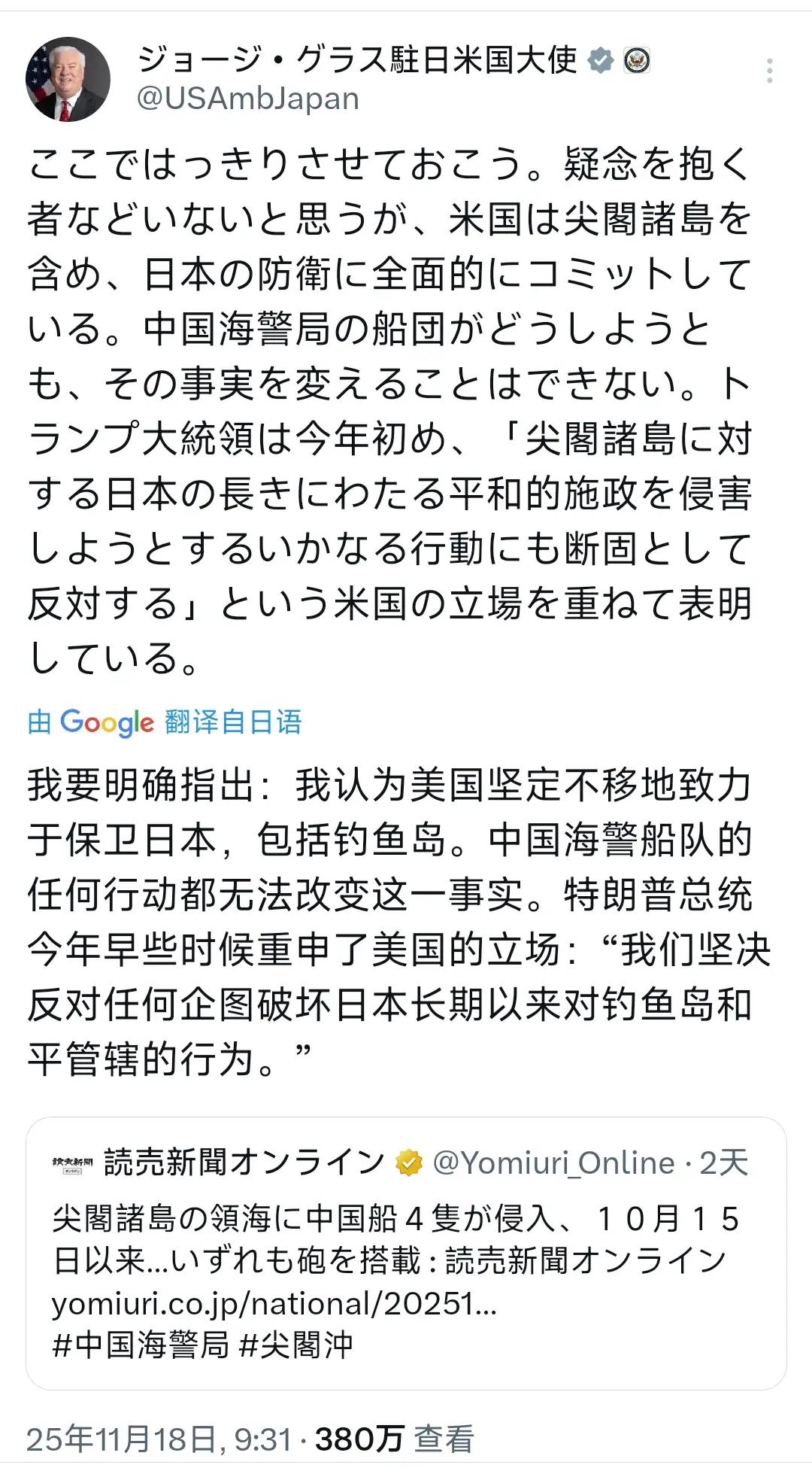 美国驻日本大使乔治·格拉斯太嚣张跋扈了!他有什么资格替小日子“划地盘”?真把自己当成牵绳的主人了?