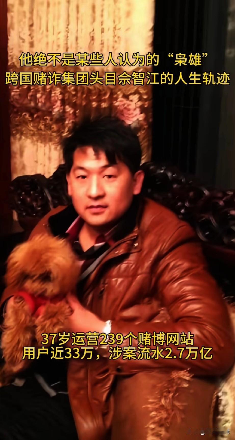 佘智江在37岁的时候,就运营239个赌博网站,用户近33万,涉案流水资金近2.7万亿元,这绝对不是一个等闲之辈,等闲之辈也做不成这么大的事,普通人在37岁的时候,有的都不一定成家立业,但是这个人进入社会早,智商情商都非常的高,社会交际能力特别的强,如鱼得水,风生水起!