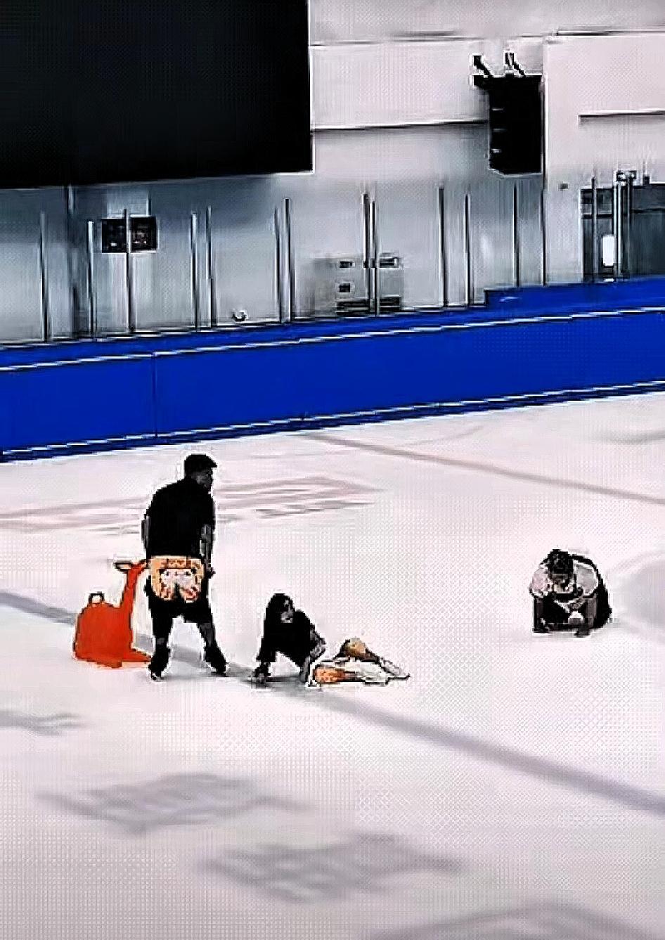 谁懂啊!滑冰女孩失控要摔的瞬间,一把薅掉场地男员工的工作裤 人遇到危险时的本