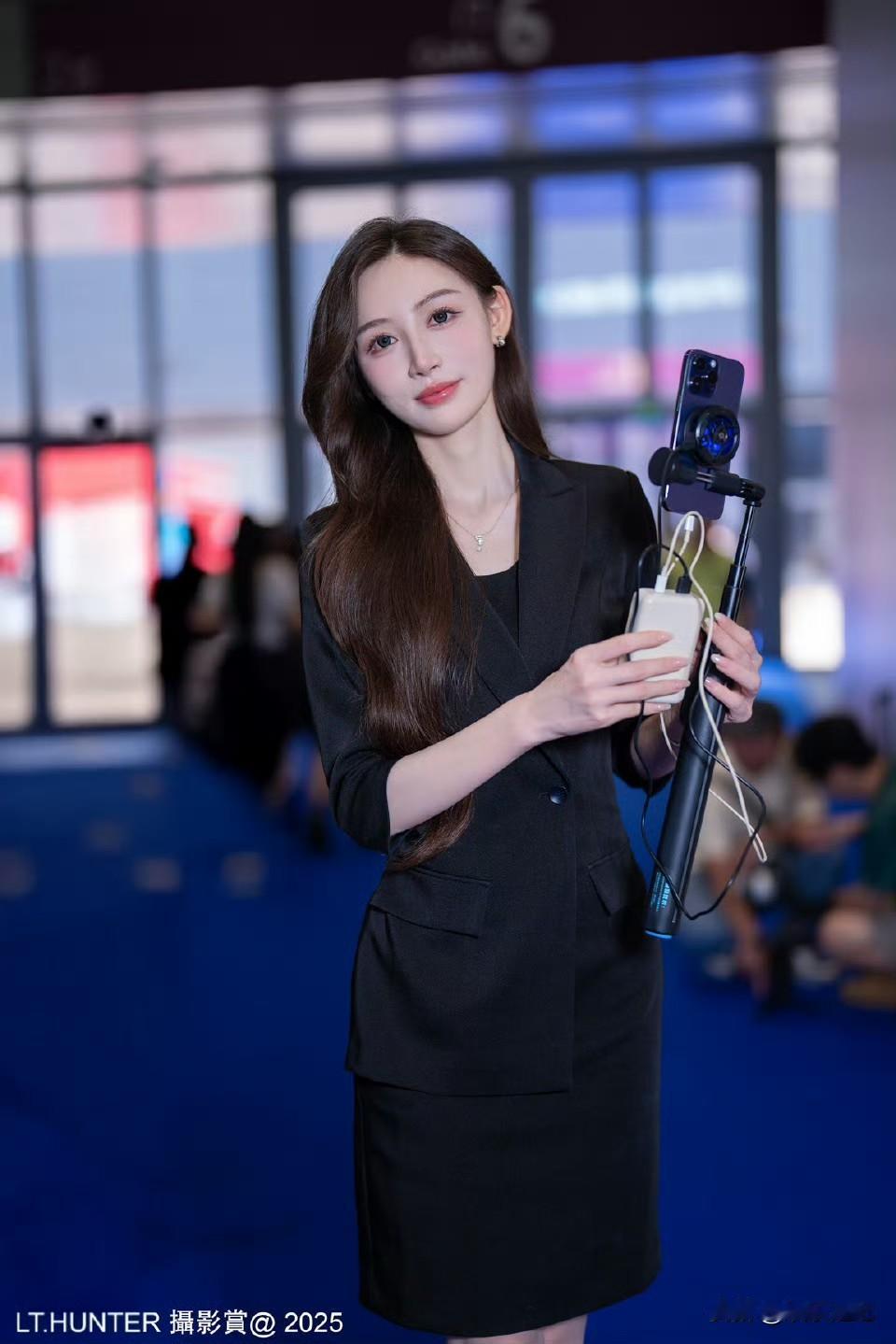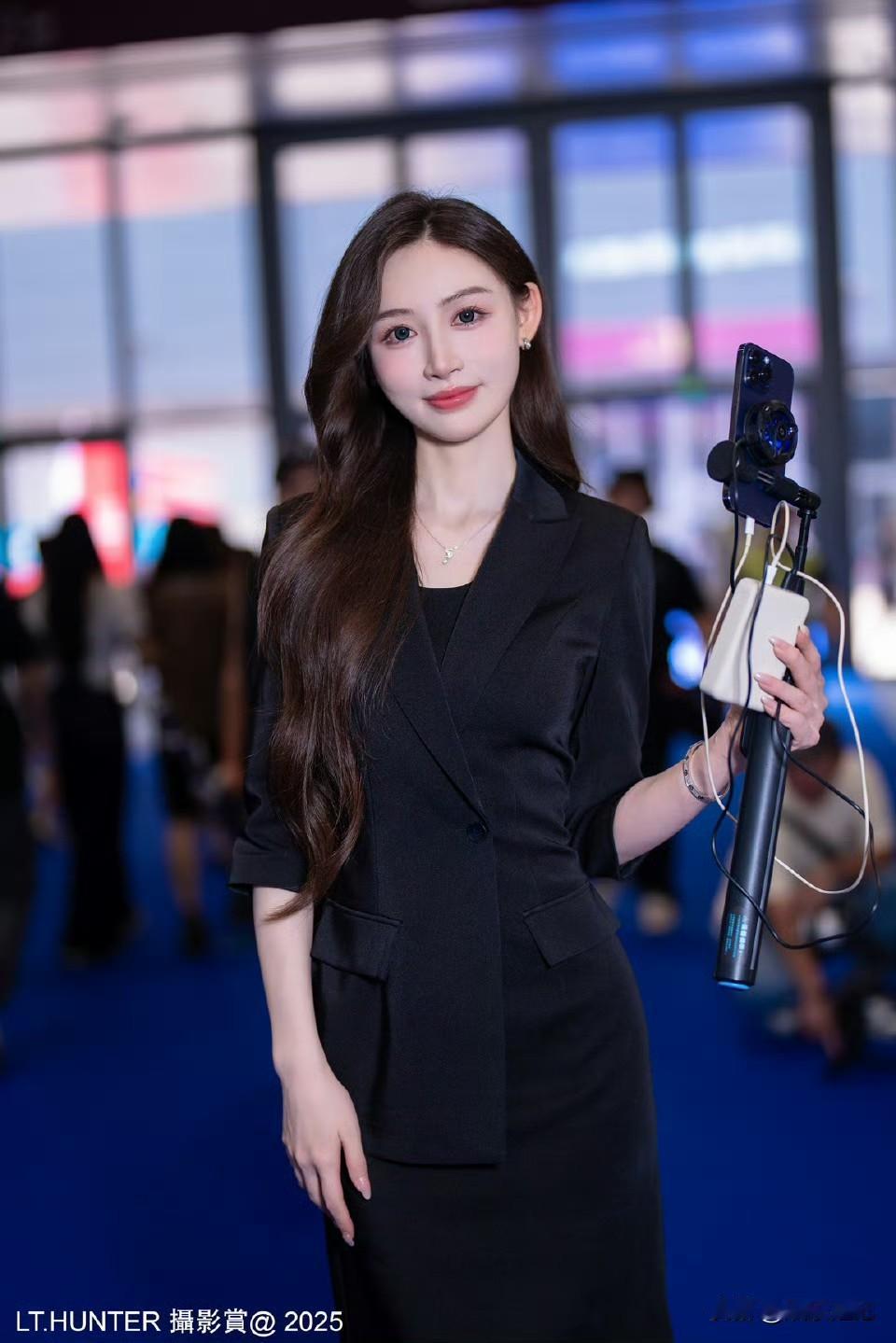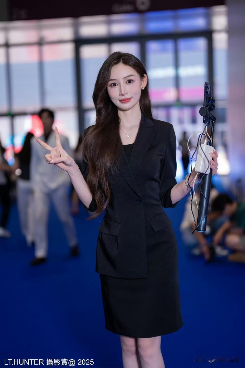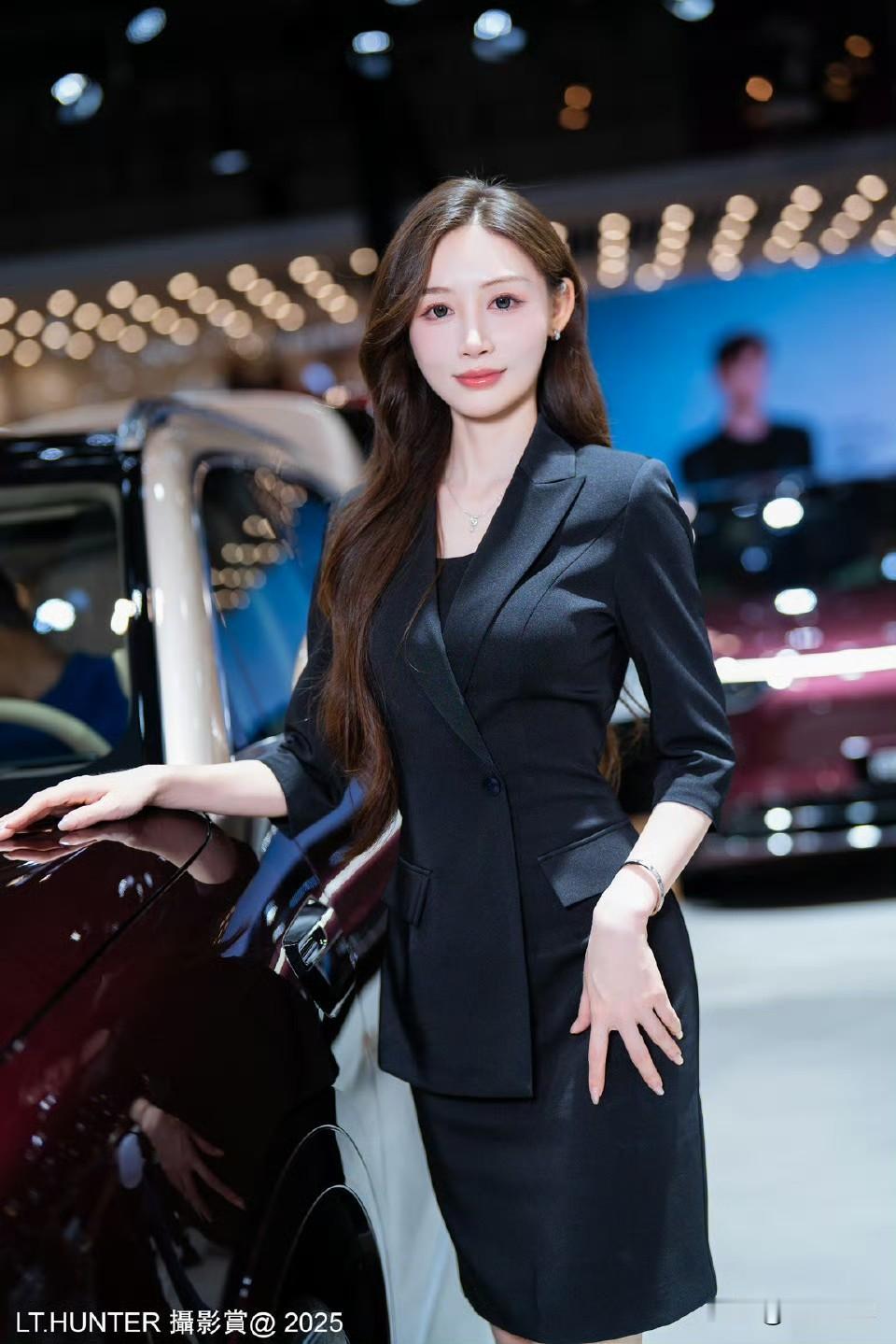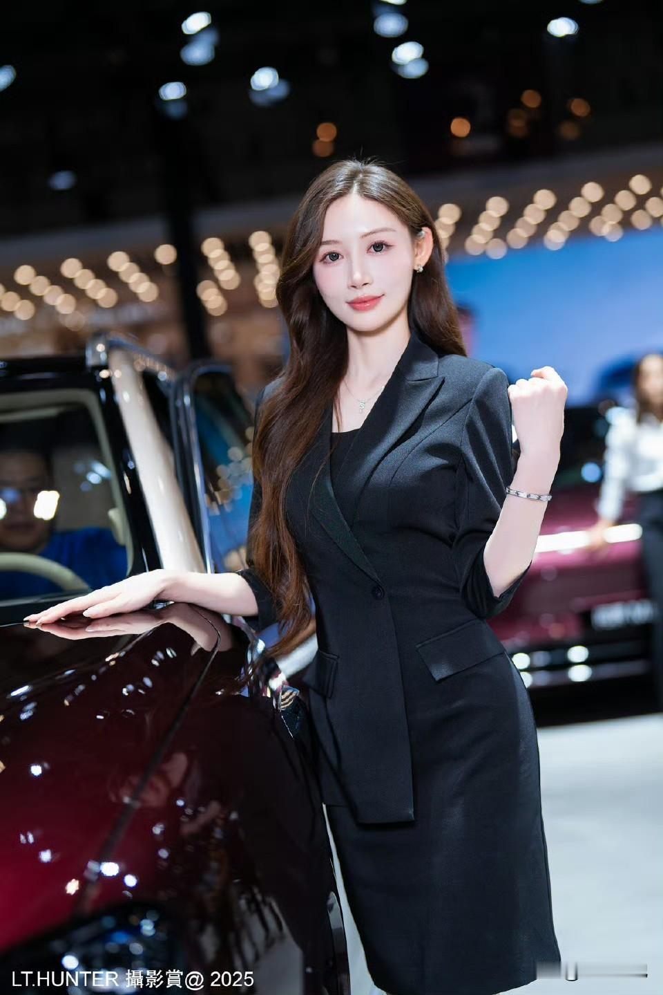 东莞车展车模“傻猪”,黑色紧身上衣配豹纹短裙,鹅蛋脸可爱到极致,有些“傻白甜”的