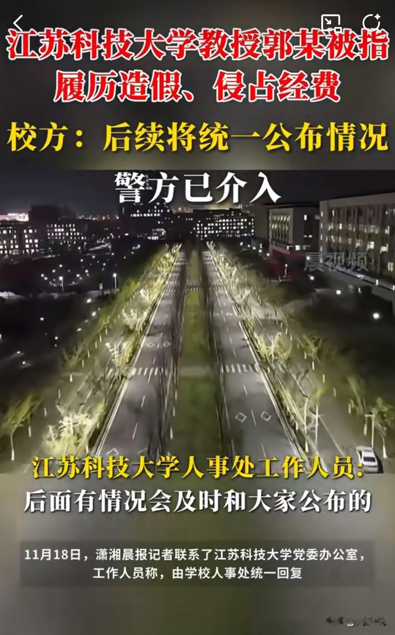 #MCN双量进阶计划#简直难以置信!江苏科技大学教授郭某被指简历造假、侵占国家科研经费,近日引发热议。 该校回应称由人事处统一回应,人事处表示正向上级部门汇报,将对未经证实消息采取法律措施,后续会公布进展。目前镇江警方已介入调查。 针对此情况,众多网友纷纷表示:“学术造假、侵占经费太恶劣,必须严查到底!” 周少想说学术诚信是底线,科研经费更是国家资源,容不得半点猫腻。郭某若属实,既辜负教育使命,也触碰规则红线。 校方需尽快厘清事实,警方严查给公众交代,唯有守住学术净土,才能护佑教育科研的公信力。#寻美三湘# #长沙新朋友#