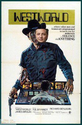 这是一个传说,话说美国的戴洛斯旅游未来城在二十一世纪的某一天,来了一个列为贵宾的客人,立即列入资料档案,在一天夜里,这里的施耐德博士立即在他的食物里面参杂了麻醉药,然后,把他送入实验室进行生物化学测试读取数据,然后,依照这个试验数据,制造了一个高仿真机器人,并且,用程序加载入机器人的大脑里面,命令他,一切行为要遵循维护美国利益,绝不做损害西方利益的事情,加载程序,要求他要绝不能跟西方的对手妥协,并且,要按时接受随后的指令行事,做完之后,他们把真人扣起来,送入美国的秘密基地,然后,把这个机器人复制品送回乌克兰,进行包装以所谓人民公仆的形象露面,竞选成功之后,就变成了今天的这个模样。