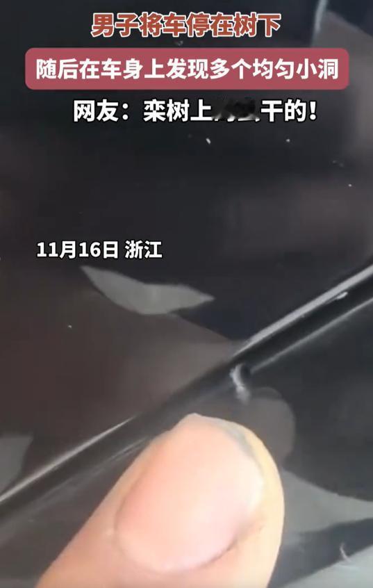 “差点解释不清了!”浙江,一男子把车停在树下,可当他准备开车离开时,却发现车身上面突然出现一些小洞,男子百思不得其解,找到汽修店老板,对方也表示不清楚原因,不过网友却一语道破:这是栾树上的虫干的! 浙江温州的林先生最近遇上桩窝心事,前几天傍晚把车停在路边栾树下,转天一早准备出门,绕车一圈当场愣住。 车身塑料件连接处、引擎盖边缘,密密麻麻全是针眼大小的小洞,最显眼的几处能透光,排列得整整齐齐,像被谁用细钻扎过。 林先生赶紧掏手机拍照,蹲下来细看,还在车底发现几只棕褐色小虫,身子细细的,两侧长着绒毛似的小细脚,爬起来飞快,他第一反应是遭了人为破坏,可四周没监控,划痕也没有,这些小洞来得蹊跷。 赶去常去的汽修店,老板拿着放大镜瞅了半天,眉头皱得老高:“修了十几年车,从没见过这么怪的损伤,不像石子崩的,也不是腐蚀的,倒像是被什么东西啃出来的。” 报保险更没戏,定损员一看现场,直接摇头:“虫子造成的损坏,不在理赔范围。” 林先生急得没法,把照片发上网问情况,配文“好好的车停树下,一夜变筛子,谁能说说咋回事?”没半小时,评论区炸了锅。 有嘉兴网友晒出同款“窟窿车”:“我刚提的新车也中招,就在栾树下停了一晚!”更有懂行的网友一语道破:“这是栾树上的夜蛾幼虫干的,春秋季最容易出事!” 这话点醒不少人,各地车主跟着吐槽,上海网友说自家车雨刷胶条被咬出锯齿印,南京车主更惨,大灯密封圈直接被啃没了。 湖州师范学院的张绍勇副教授看了照片,也给出说法:“这虫子看着像夜蛾幼虫,也就是‘扑棱蛾子’的宝宝,有对硬邦邦的带齿上颚,连植物茎秆都能啃,塑料件刚好在它们‘磨牙’范围内。” 栾树是城市常用行道树,颜值高、长得快,却藏着“隐形杀手”,春天生蚜虫,分泌的蜜露粘在车上,混了灰尘就成酸性物质,能腐蚀车漆。 尤其是到了秋天,夜蛾幼虫扎堆,晚上出来活动,爬到车上要么找地方化蛹,要么纯粹磨口器,塑料件、橡胶条全成了“磨牙棒”。 有汽修店老板透露,每年这时候都能接十几起类似活儿,最夸张的一辆奔驰全车做漆花了八万多。 林先生这才恍然大悟,想起停车那天确实看见栾树叶子上爬着不少小虫,当时没当回事,更让他无奈的是,找物业反映,对方说每周都喷药,可虫子有了抗药性,越喷越猖獗;问园林部门,回复只管树木存活,虫害防治没专项预算。 网友们倒总结出不少经验,有人说试过罩车衣,结果蜜露腐蚀了粘合剂,撕下来连车漆带掉;有人支高招,在车门缝喷薄荷精油,虫子怕这味儿。 最实在的还是“躲着走”,尽量别在栾树下停超过两天,停之前先看地面,有虫粪、蜜露痕迹赶紧换地方。 林先生最后花了两千多块换塑料件、补漆,临走前跟汽修店老板念叨:“以前只知道树下能遮阳,哪想到藏着这么些小祸害。” 这事儿也给大伙提了醒,路边停车别光图方便,瞅一眼树种再停,遇上栾树,最好绕着走,毕竟车被啃出窟窿事小,要是虫子钻进发动机舱,麻烦更大。