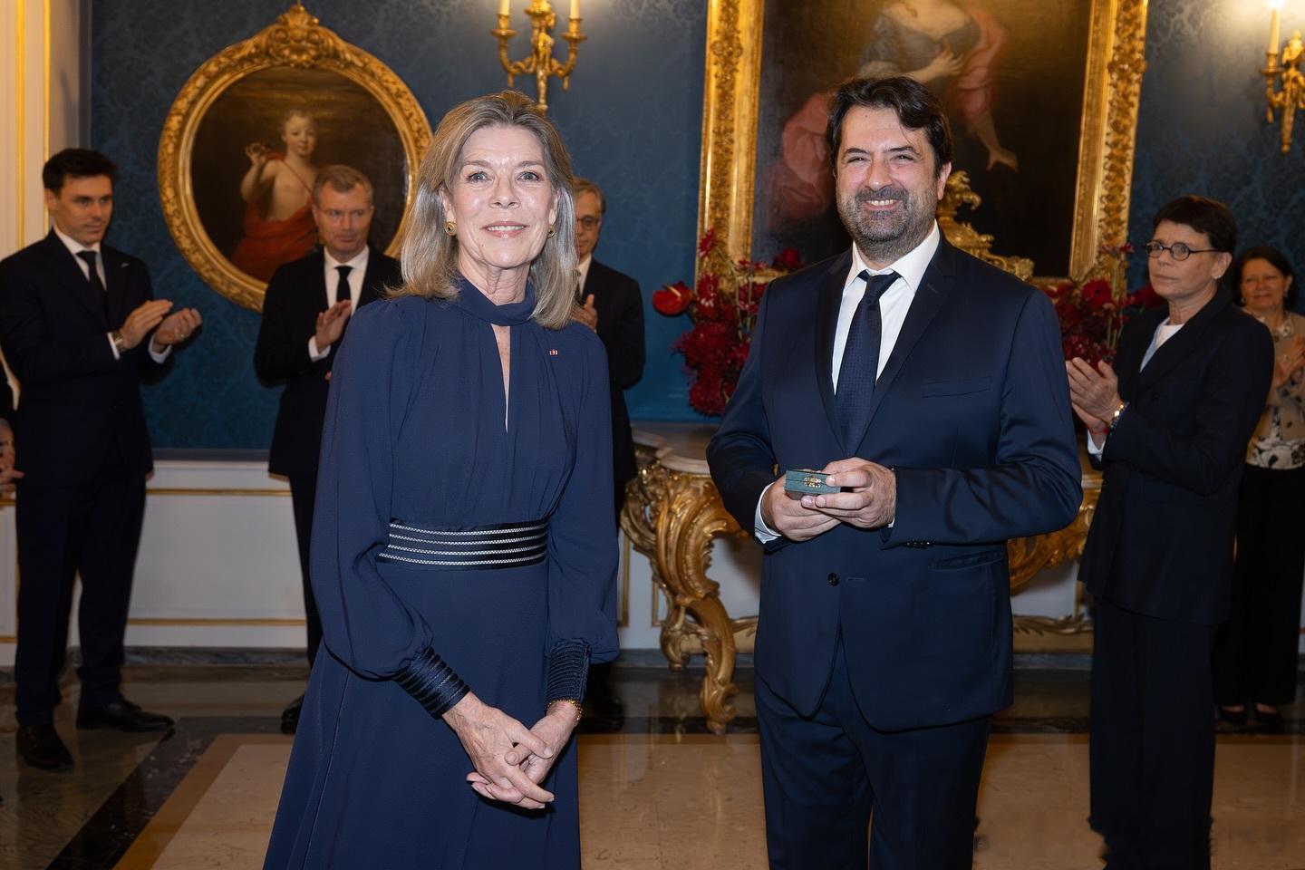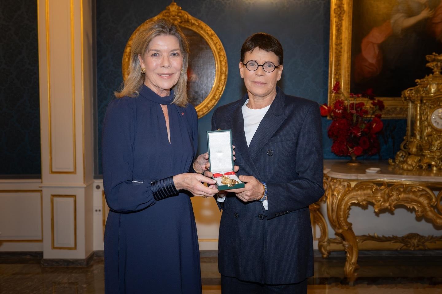 2025.11.18 摩纳哥王室成员出席2025年度国庆节颁奖仪式,斯蒂芬妮获得该勋章(Commander级别),卡洛琳亲自为妹妹斯蒂芬妮颁发,之后斯蒂芬妮和小女儿卡米为群众派发国庆日礼物。