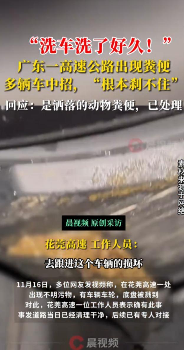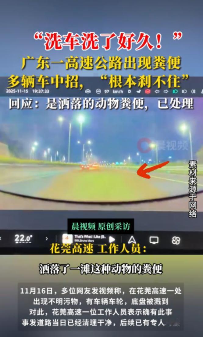 “防不胜防!”11月15日,广东东莞,一货车在高速上行驶时,车厢泄露了大量动物粪便,路过的车辆没有及时发现,若无其事的开了过去,结果车轮突然打滑、车内弥漫着令人作呕的味道,还有车辆发生事故!网友:谁出钱维修? 当晚高速上的情况,说起来真是让人哭笑不得又满心无奈,一辆拉运动物粪便的货车在行驶过程中,不知道是车厢密封出了问题,还是装载不当,大量粪便从车厢里泄露出来,顺着高速路面蔓延开,形成了几公里长的黄色污染带。 那时候天已经黑了,高速上车辆来来往往,不少司机一开始压根没发现路面的异常,还是像往常一样正常行驶,完全没预料到前方等着自己的是个 “隐形陷阱”。 等车辆驶进污染带,司机们才察觉到不对劲。首先是车轮突然变得发滑,方向盘一下子就不听使唤了,粪便让路面变得异常湿滑,轮胎抓地力大幅下降,有的车猛地侧滑,有的司机紧急刹车,结果差点和前后车撞上。 更让人崩溃的是,一股浓烈又刺鼻的恶臭瞬间钻进车厢,那味道直冲天灵盖,让人忍不住捂鼻子、反胃,就算关了车窗也挡不住,不少车主说 “简直要把晚饭吐出来”。 现场的情况可谓是一片混乱,有的司机反应快,凭着多年的驾驶经验,在车轮打滑的瞬间死死稳住方向盘,慢慢减速总算有惊无险地开了过去,可有的司机没那么幸运,要么没稳住车撞上了护栏,要么和旁边的车发生轻微碰撞,还有的因为急刹车被后车追尾,原本顺畅的高速 traffic 一下子堵了起来。 事故不算特别严重,但架不住场面狼狈,被粪便污染的车辆车身、车轮上都沾着污秽,看着就让人头皮发麻,更让人头疼的是这场意外的 “后遗症”,那些不幸中招的车辆,不光车身沾满粪便,车厢里的异味更是钻缝入户,就算车主连夜把车开去洗车店,花大价钱做了彻底清洗,甚至给内饰做了消毒除味,那股恶臭还是像粘在了车上一样阴魂不散。 有车主吐槽之后开着车,一开窗就隐约能闻到味道,就算关着窗,也总觉得空气里飘着一股异味,好好的车硬是变成了 “移动臭源”,根本没法安心用。 这事儿被网友发到网上后,很快就引发了热议,大家都觉得这纯属 “飞来横祸”,司机们根本没有任何过错,平白无故遭遇这种事,又要修车子又要除异味,损失着实不小。 不少网友留言:“这也太倒霉了,高速上遇到这情况,谁能提前想到啊?”“肯定得找泄露粪便的货车负责啊,密封不好就上路,这不就是害人嘛!”“也不知道保险管不管这种情况,总不能让车主自己认栽吧?” 大家你一言我一语,核心诉求都很一致:希望能有人来兜底,承担车辆维修和清洗的费用。 好在事情发生后,相关部门的反应还算迅速,接到报警后工作人员第一时间赶到现场,一边疏导交通,一边组织人员清理路面上的粪便,避免更多车辆中招。 考虑到很多车主的车辆受损、内饰被污染,官方没有不管不顾,反而主动站了出来,对外公布了专门的对接渠道,让受损车主可以登记信息,后续会统一处理维修和清洗的相关事宜。 这个举动算是给车主们吃了一颗定心丸,原本大家还在担心 “投诉无门”,怕这事儿最后不了了之,自己得掏腰包承担损失,官方主动兜底的态度,让不少车主的情绪平复了不少,网友们也纷纷点赞:“处理得挺给力,没有让车主白受委屈”“就该这样,责任分明,不能让无辜的人买单”。 虽然这场意外听起来有些荒诞,甚至带着点喜剧色彩,但背后暴露的问题也值得深思,拉运这类特殊货物的货车,密封措施一定要做到位,不能图省事就忽视安全和卫生,不然不仅会给其他车主带来麻烦,还可能引发严重的交通事故。 而对于车主们来说,遇到这种突发情况也确实没办法,只能说开车在外,尤其是夜间在高速行驶,得多加留意路面情况,遇到异常及时减速避让。 (信息来源:极目新闻——广东一高速出现排泄物,多车中招,“车底沾满车轮打滑停不下”,回应:是洒落的动物粪便,已处理)