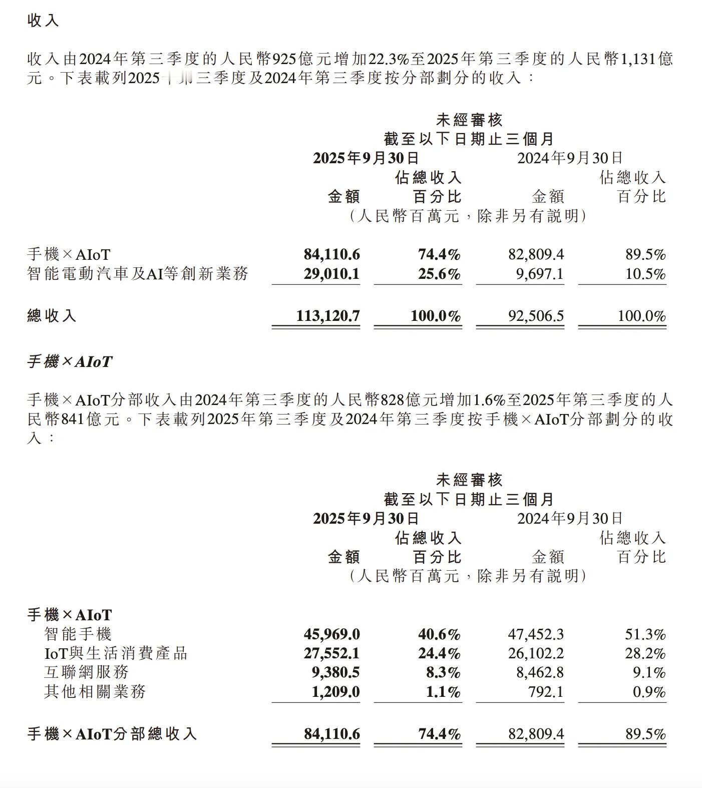 小米汽车单季收入已经达到290亿,超过了IoT的275亿,距离手机的459亿还有一定距离。预计小米汽车单月交付6万的季度,就会成为集团营收第一的业务板块了。