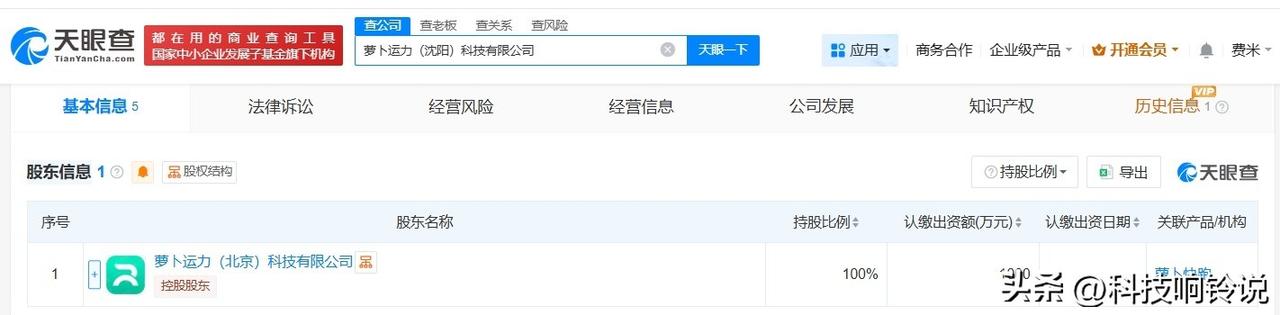 【萝卜快跑在沈阳成立科技公司 注册资本1000万】 天眼查工商信息显示,近日,萝卜运力(沈阳)科技有限公司成立,法定代表人为李英照,注册资本1000万人民币,经营范围包括人工智能基础软件开发、人工智能应用软件开发、计算机系统服务等。股东信息显示,该公司由萝卜快跑关联公司萝卜运力(北京)科技有限公司全资持股。 天眼查信息: