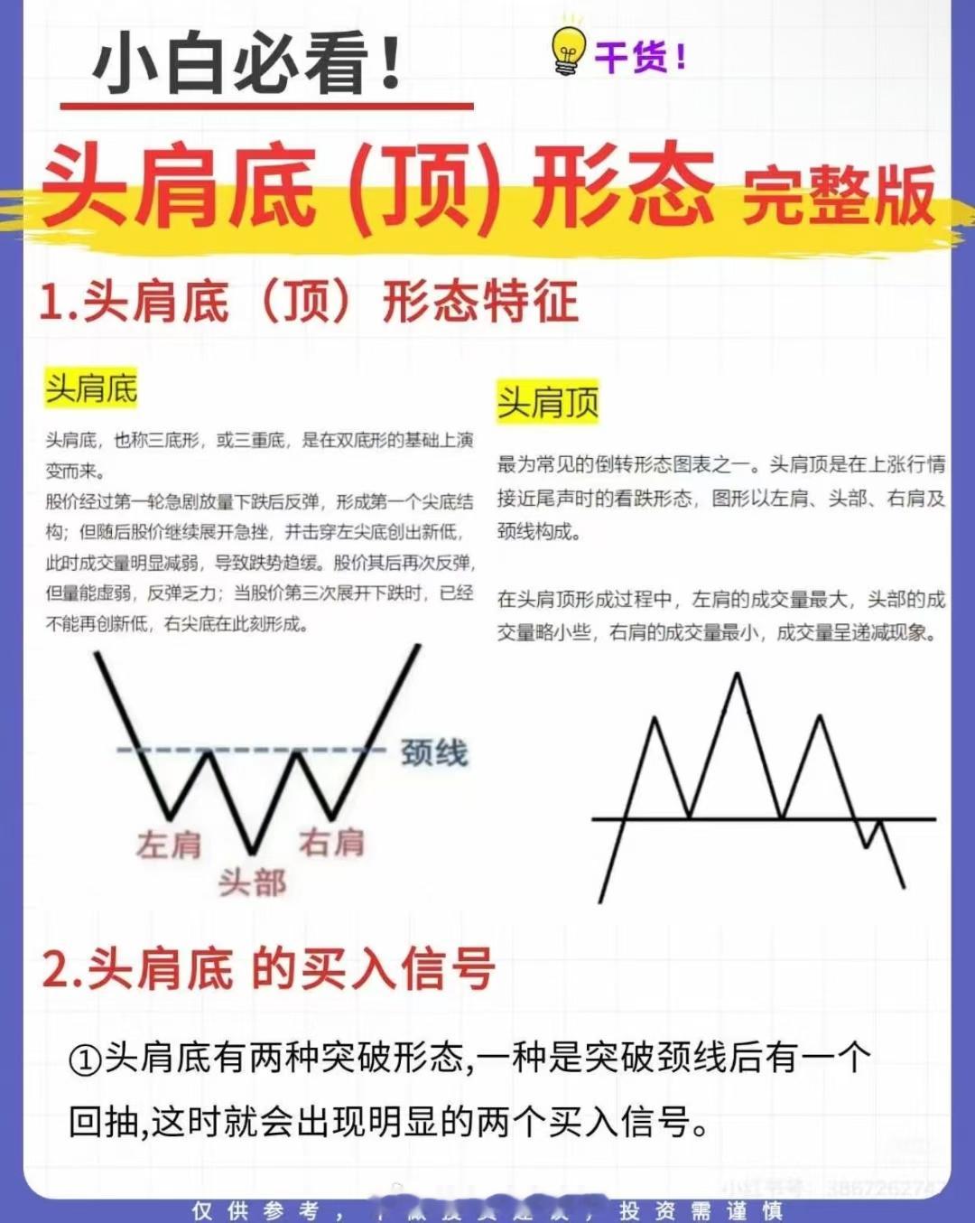 “【交易干货】头肩底/顶形态完整版拆解!头肩底:双底进化版,三次下跌后筑底,突破颈线是买点头肩顶:上涨尾声看跌形态,量能越涨越少要警惕新手记好这俩反转形态,行情拐点早知道