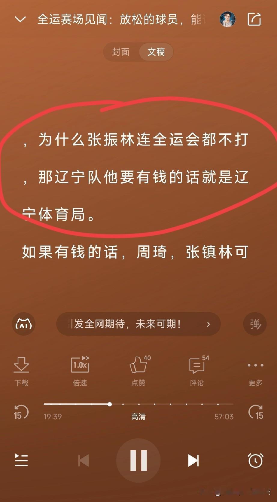 答疑解惑!篮球记者:张镇麟和周琦因为和辽宁体育局钱没谈妥,所以没代表辽宁打全运会;恕我直言不讳,不打就不打,没什么,价高者得,篮球运动员生涯也就十几年的黄金期,除联赛+商业活动代言,全运会地方队招兵买马,也是球员快速变现和实现财务自由捷径,张镇麟不但没代表辽宁打全运会,他压根就没有参加全运会,周琦更简单,开价太高,放他自由吧