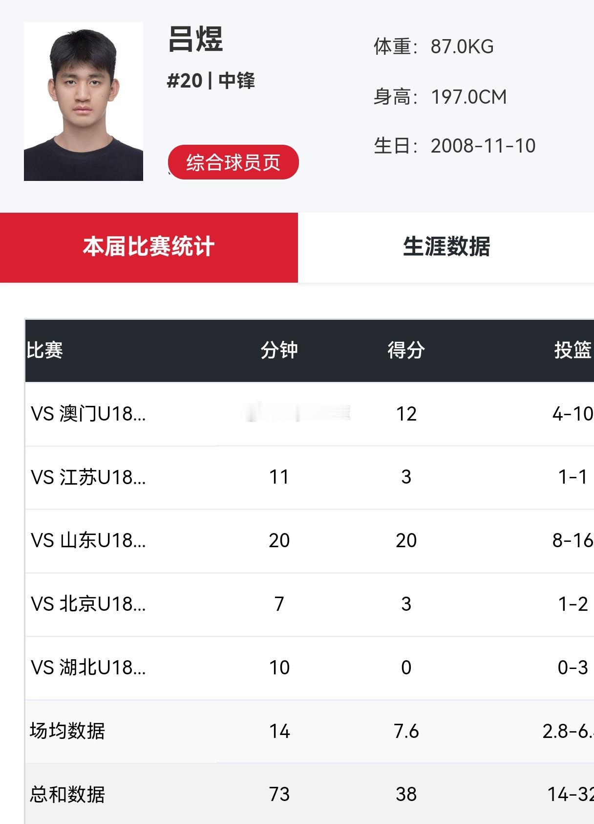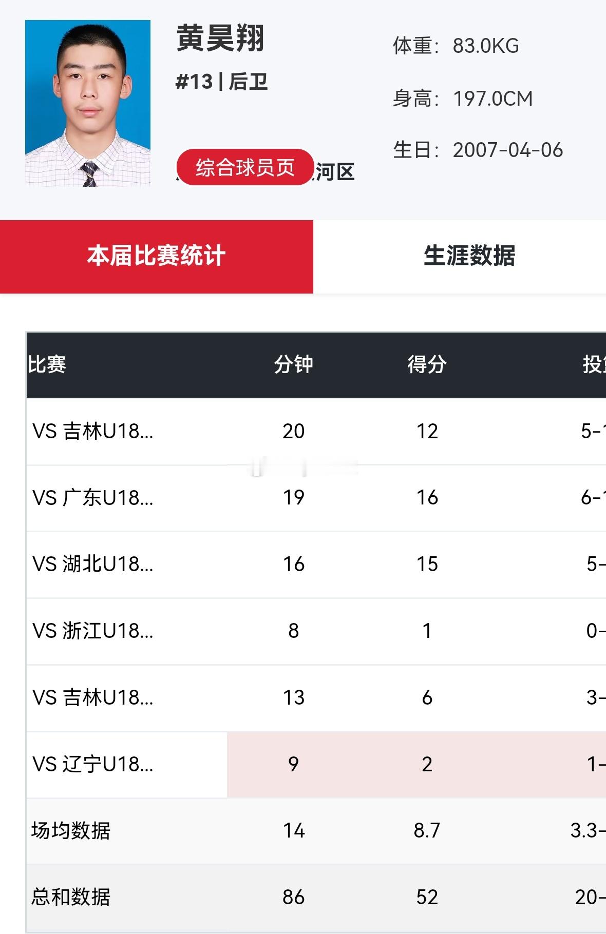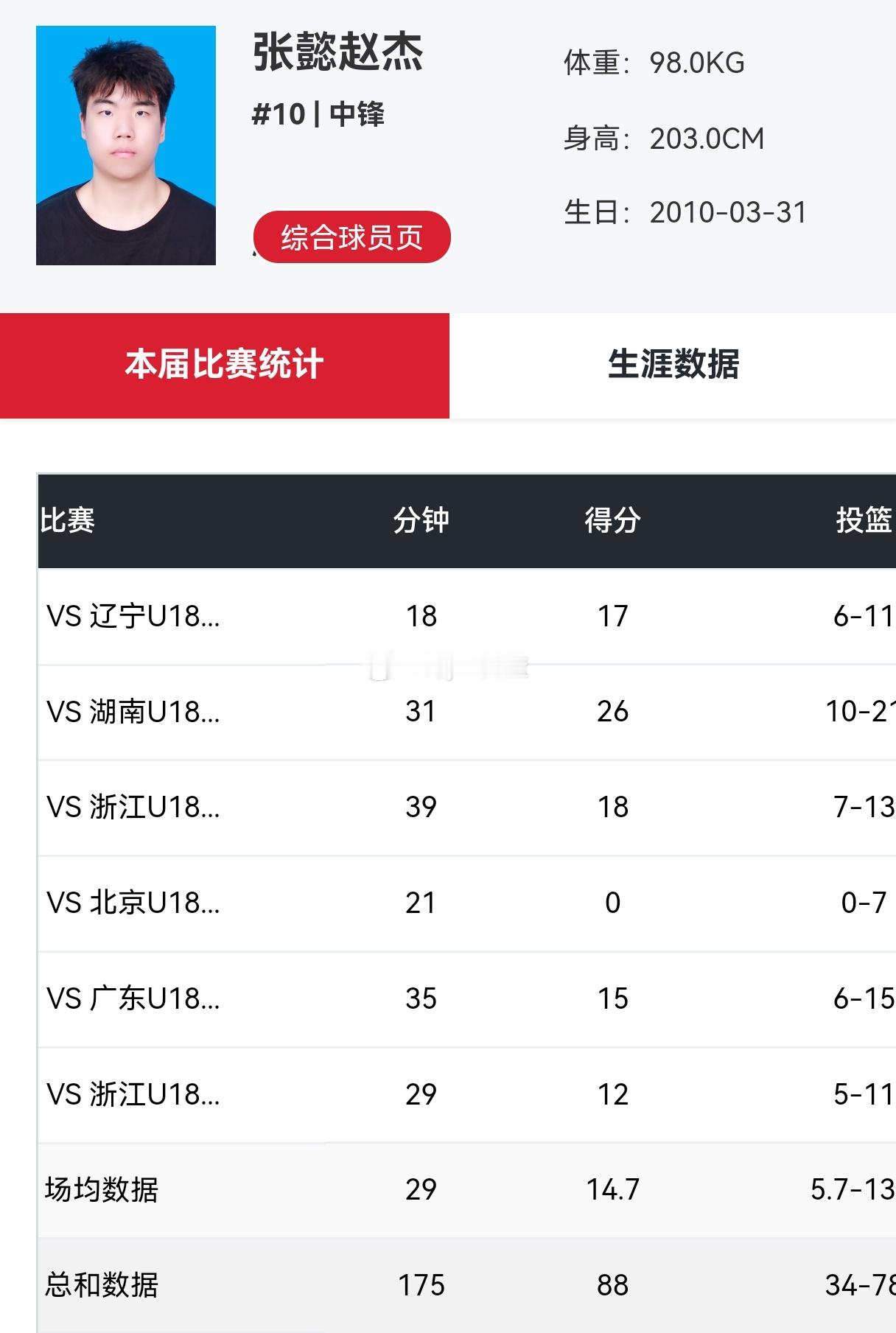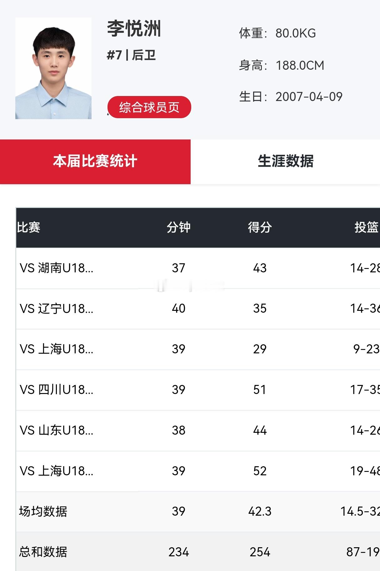 全运会U18组的比赛昨天已经全部结束,盘点几位留洋高中生在全运会的表现:张博源场均24分钟,得到26.9分7.7篮板1.6助攻1抢断。朱正场均22分钟,得到13.5分3篮板4.5助攻1抢断。杨竣熙场均24分钟,得到13分3.8篮板1.5助攻。黄昊翔场均14分钟,得到8.7分5.7篮板1.2助攻。吕煜场均14分钟,得到7.6分4.2篮板。除张博源外,其他几位并没有打出太强的统治力,其实他们个人能力方面并没有太大问题,最重要的原因还是旅途劳顿倒时差、和队友磨合不到位等因素。另外我还想再着重提一下两个球员,一个是有NCAA一级offer但受限于俱乐部规划而没能出去留洋的李悦洲,他场均39分钟,得到42.3分4.3篮板4.5助攻1.5抢断,他的表现在U18组完全超班了,说他是本届全运会U18组的第一人也不为过,下赛季随着王奕博转会青岛,李悦洲一定会成为浙江队一号位的重要轮换,只不过他最大的问题还是保持健康,本届比赛他的腰伤并没有100%康复,但依然场场打满,这其实对他来说也是一个隐患,所以下赛季到了对抗更强的CBA,保持健康是李悦洲最重要的目标之一。另外一个则是15岁越级打U18组,同时未来会选择留洋的张懿赵杰,他场均29分钟,得到14.7分7.5篮板2助攻1.5抢断,作为比其他人小了3岁的球员,场均有这个表现已经非常不错,他在场上对技术的运用,以及整体表现的成熟度真的不像一个15岁的小孩,对小杰来说越早走出去就越有利于他未来的发展。