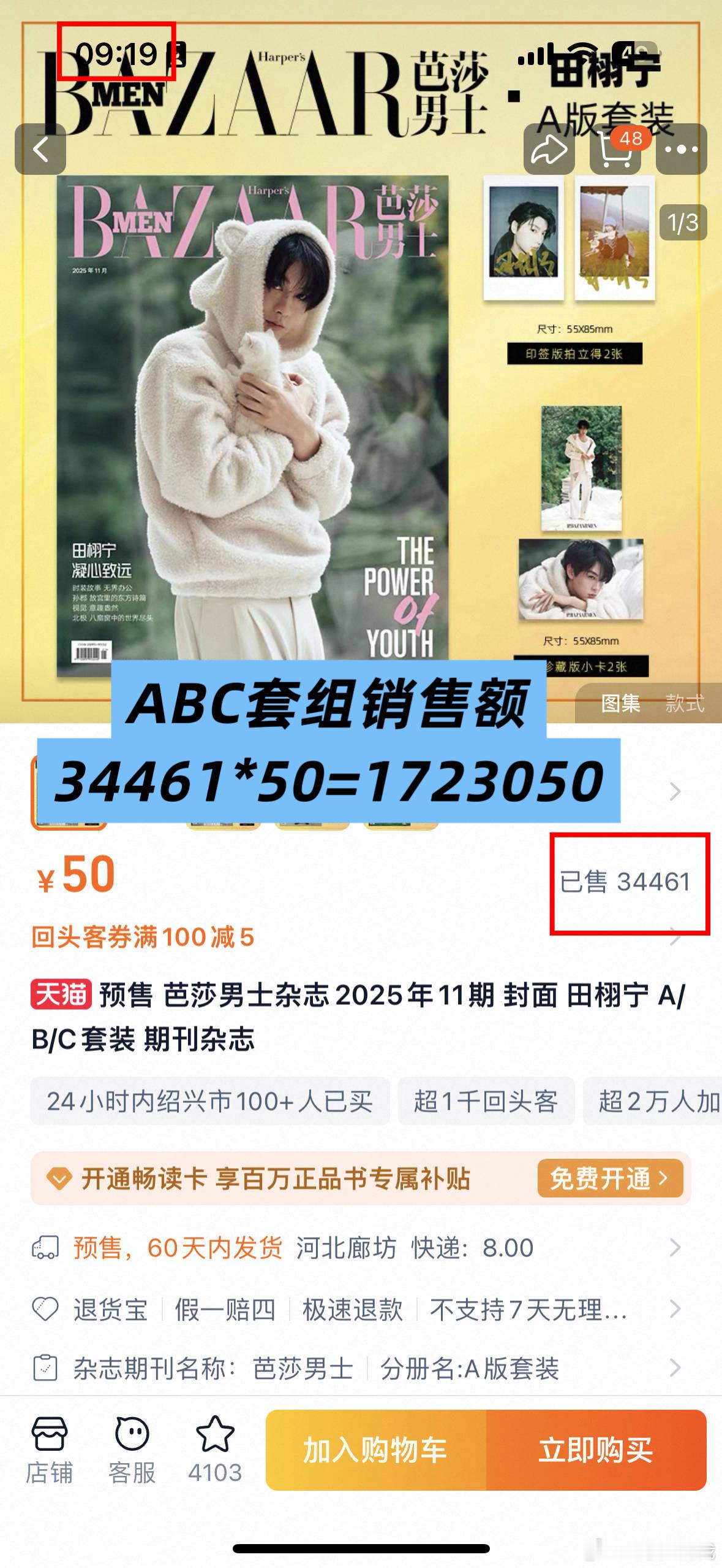 恭喜田栩宁杂志创纪录!登顶《芭莎男士》创刊以来销售额TOP1💥共售出30w+本,共计1512w+销售额!太强了
