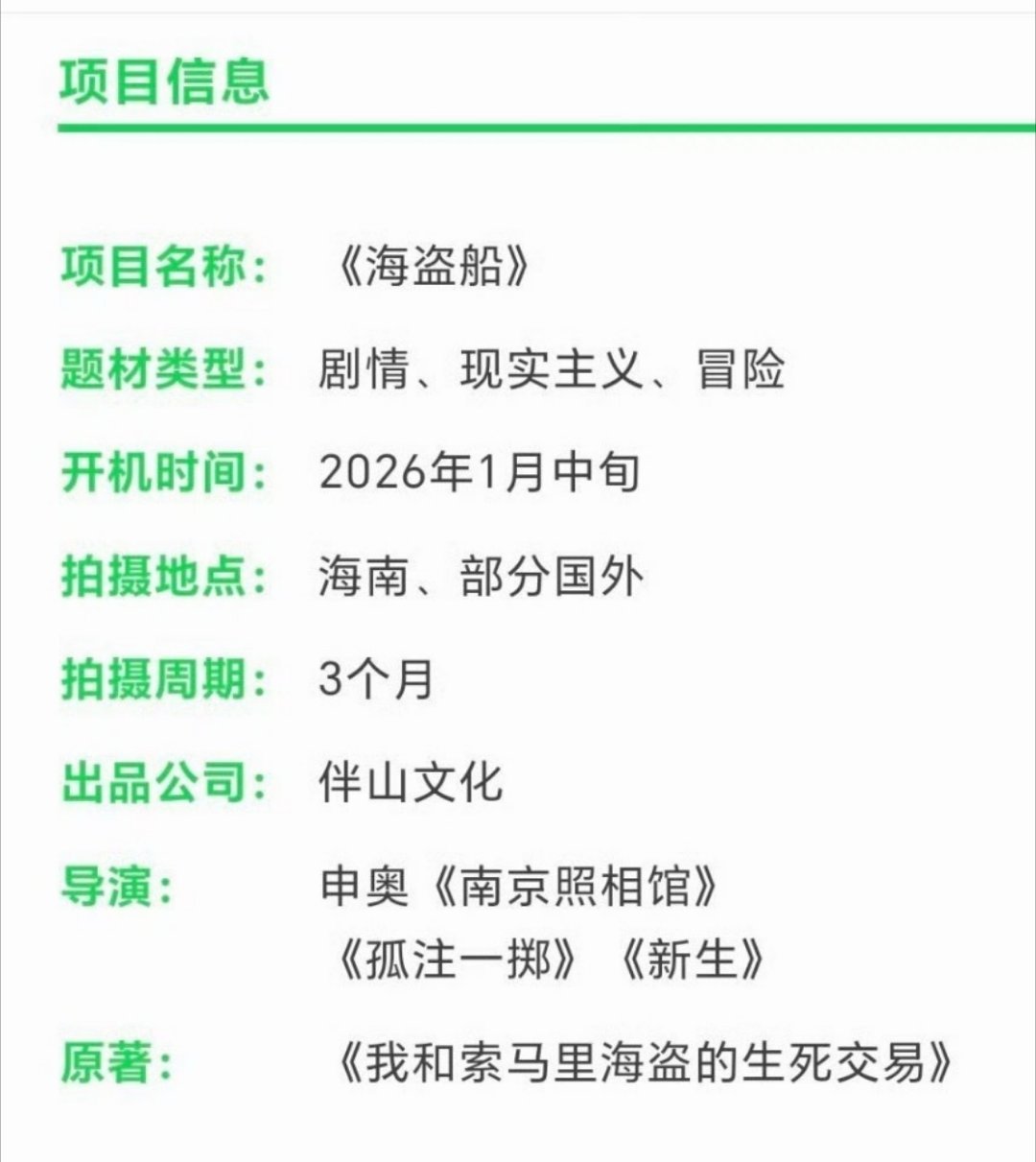 🍉🍉悬疑剧《海盗船》明年年初开机导演:申奥(《孤注一掷》《新生》)主演:于适