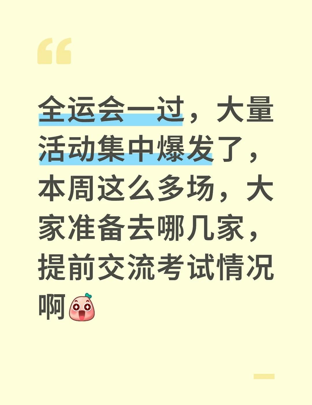全运会一过,大量活动集中爆发了,本周这么多场,大家准备去哪几家,提前交流考试情况啊[惊喜] 小升初 广州