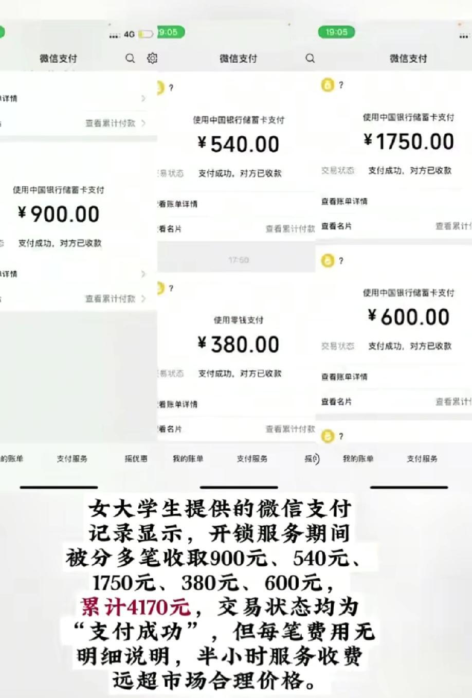这不是明抢吗? 女大学生网购27元的“上门开锁”变拆锁,明明写着几十元开锁费上门后却收取4170元,不仅如此,还要求录视频证明“对所有费用无异议”! 最气人的是,女大学生索要支付明细却被怼:“没听说过,去找警察开吧”! 这样的事情已经不是第一次发生,开锁都能收四千多,究竟这些收费标准是谁来定价?又由谁来监管? 像这种乱收费的现象平台有没有监管责任,消费者的利益如何才能得到保障。 女大学生的遭遇希望能引起相关部门的重视,不要再让类似的事情再次发生。