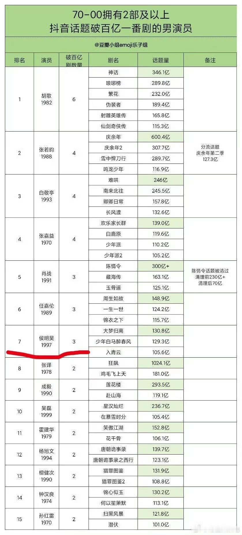 95生侯明昊太扛剧了!其作品一番剧《大梦归离》《少年白马醉春风》《入青云》,频频斩获荣誉——❶3部剧,抖音话题均破百亿。❷95生,唯一,一番,3部作品优酷站内破万男主。