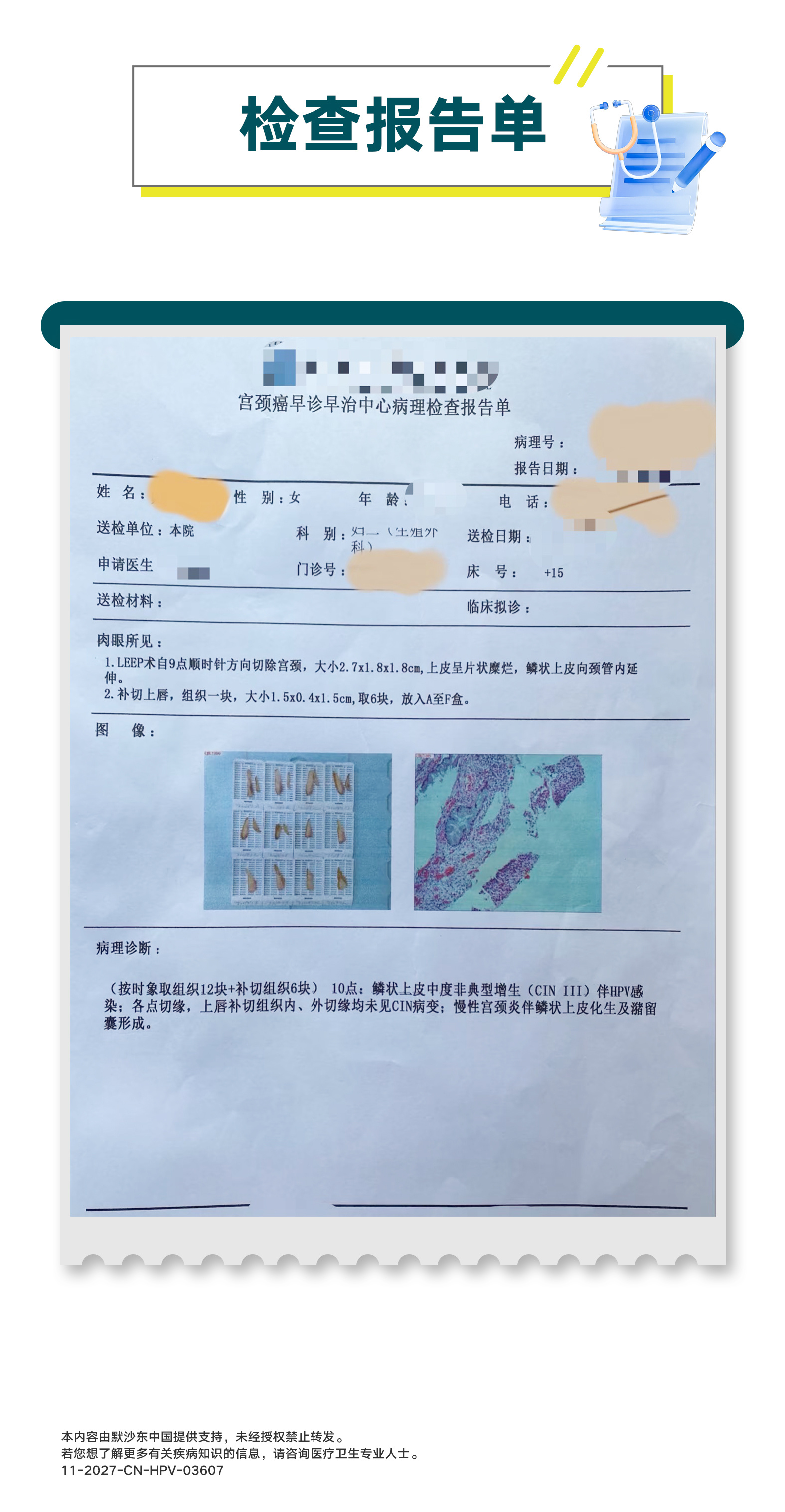 亲密后又发现内裤上有一丝鲜红的血迹,还伴随着分泌物增多,这时候难免慌了:是动作太大弄破了吗?还是阴道有炎症?总不见得是宫颈的问题吧……每次刷妇科医生的微博,下面很多类似提问,我都想一个一个回复,立马去医院检查,别再自我怀疑了。刚好前段时间刷留言看到一位患者自述,她的患病过程也是因为忽略定期筛查,导致宫颈病变恶化,很是令人警醒。她坦言自己刚入职场时,与初恋男友性生活后有好几次内裤上都有血迹,当时吓了一跳到医院检查显示是HPV感染,医生建议改改生活方式提高免疫力,同时叮嘱定期复查,并预防持续感染和其他型别感染。但她后来自己忙着创业结婚,把复查这事抛之脑后,一晃几年过去,直到年初计划备孕去体检,结果出来傻眼了,报告显示HPV16、18等4种HPV阳性,进一步检查确诊子宫颈上皮内瘤变3级(CIN3),医生说“不排除鳞状细胞癌”。她说当时已经崩溃了,怎么也想不明白,为什么自己年纪轻轻怎么就可能癌变了呢?医生建议她选择LEEP手术治疗:可以把宫颈想象成一颗完整的苹果,病变的部分就像苹果表面已经发黑、即将腐烂的斑点,如果不及时削掉,腐烂会慢慢深入果肉,甚至蔓延到整个苹果。leep 手术就像是一把特制的‘精准削皮刀’,既能彻底清除病灶,又能最大程度保留宫颈的正常生理结构和功能——相当于保住了‘整颗苹果’,不用过度担心。”整个leep手术过程虽然只有20分钟左右,但她能闻到自己肉被烧焦的味道,由于第一次切除可能有残留,还补切了一块。而且就算是打了麻药,依然能感受到隐隐的疼痛不适,整个过程很煎熬。手术结束后会有一些出血,麻药过后小腹持续疼了几个小时。医生叮嘱要保证私处清洁、近期切勿进行性生活,以后一定要注意定期复查、预防HPV再感染。后续复诊时,医生说:从病理结果来看,是鳞状上皮中度非典型增生合并 HPV 感染,没有发现癌细胞,而且切缘已经干净了。她这个情况很幸运,在癌变前就及时发现并切除了病变组织,只要术后恢复良好,定期复查没有异常,完全可以自然怀孕,对未来的生活和事业也不会有影响。目前几次复查后,她说指标已经逐步恢复正常了。这个患者想用她自己的例子警醒广大女性,千万不要轻视HPV感染!要知道,几乎所有的宫颈癌(99.7%)都与HPV的感染有关。HPV感染后,大多可被免疫机制自行清除,所以多数HPV感染是一过性且无临床症状的,但某些型别HPV持续感染可导致癌前病变和宫颈癌。不过好在,宫颈癌是一种可预防的癌症,我们可以依照三级预防策略早预防。最后提醒!一旦检查出HPV感染,不论是高危还是低危,一定要定期复诊,别错过最佳的治疗黄金期。