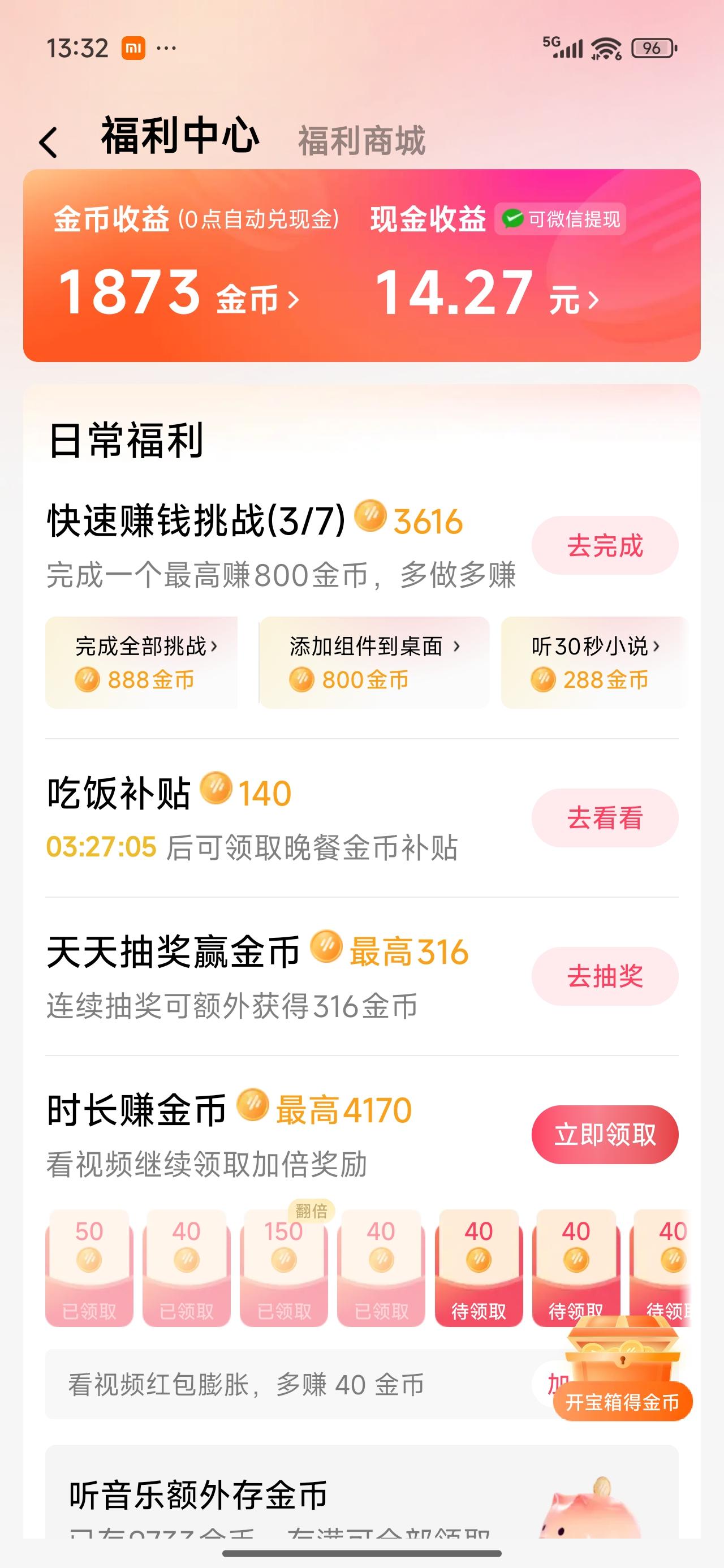 最近我除了在头条不断更新,还在一些app上薅点羊毛,分享给友友们。 前几天我在头条普通版本和头条极速版提现45元,最近我午休时间,把番茄畅听打开,声音关到无声状态,把听歌时长听满,等我午休起来,金币也可以攒不少,眼看着我马上可以提现20元了。 还有番茄小说app,我是用另一个手机播放,也是开到无声状态,差不多也要提现20元了。