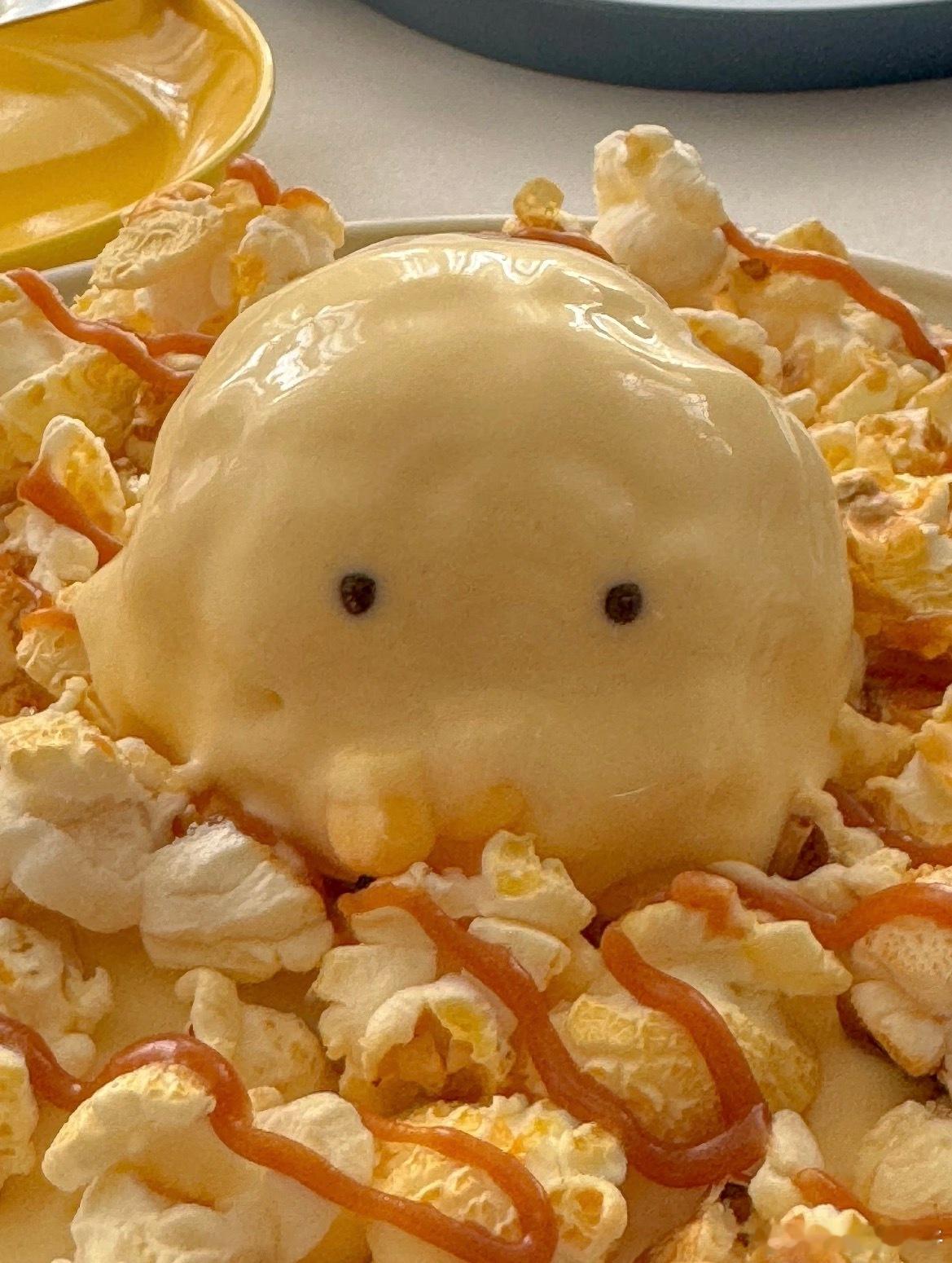 玉米脑袋不要错过这款甜品 边熬酱边偷吃的快乐谁懂!底下是烤的酥酥脆脆的黄油挞皮🌽内馅是细腻嫩滑的玉米布丁🍮顶上搭配了嘎滋嘎滋脆的焦糖海盐爆米花和玉米冰淇淋🍦每口都给味蕾带来了美妙的享受!步骤:1️⃣玉米剥成粒,和牛奶一起倒入到破壁机里打成玉米汁,打好的玉米汁用滤过滤一遍,滤好的玉米汁倒入奶锅中,加入蛋黄、白糖、低粉搅拌均匀,小火加热到浓稠状态,保鲜膜贴面放冰箱冷藏4小时或过夜2️⃣ 低筋面粉和糖粉混合均匀,加入切小块的黄油,搓匀成细颗粒状,分批加入牛奶揉成一个面团,包上保鲜膜放入冰冷水合冷藏一小时3️⃣将玉米布丁的材料都混合均匀,过筛一遍备用,烤箱170度预热10分钟4️⃣ 面团擀薄后放入模具中,底部和四周都要贴合好,倒入布丁液,送入预热好的烤箱170烤40分钟,烤好后晾凉后脱模5️⃣ 奶酪软化后加入卡仕达酱混合搅拌均匀,倒入奶油和白糖打发至硬挺,先摸一层在布丁挞上,剩余的送冰箱冷冻成雪糕状态6️⃣把玉米粒加入到爆爆乐里,放入微波炉里叮3分钟,就能有香喷喷的爆米花,把做好的爆米花加在布丁挞上,淋上焦糖酱,再用雪糕勺挖出雪糕放在上面,用巧克力画上眼睛和小脚就可以啦在家就能轻松实现爆米花自由啦!只需微波炉3分钟就能吃到好吃的爆米花,多种口味随心吃!而且不用的时候还可以折叠收纳起来节省空间,也太贴心了吧点💕除了做爆米花外还可以做各种美食,以后追剧的小零食就被他包圆啦