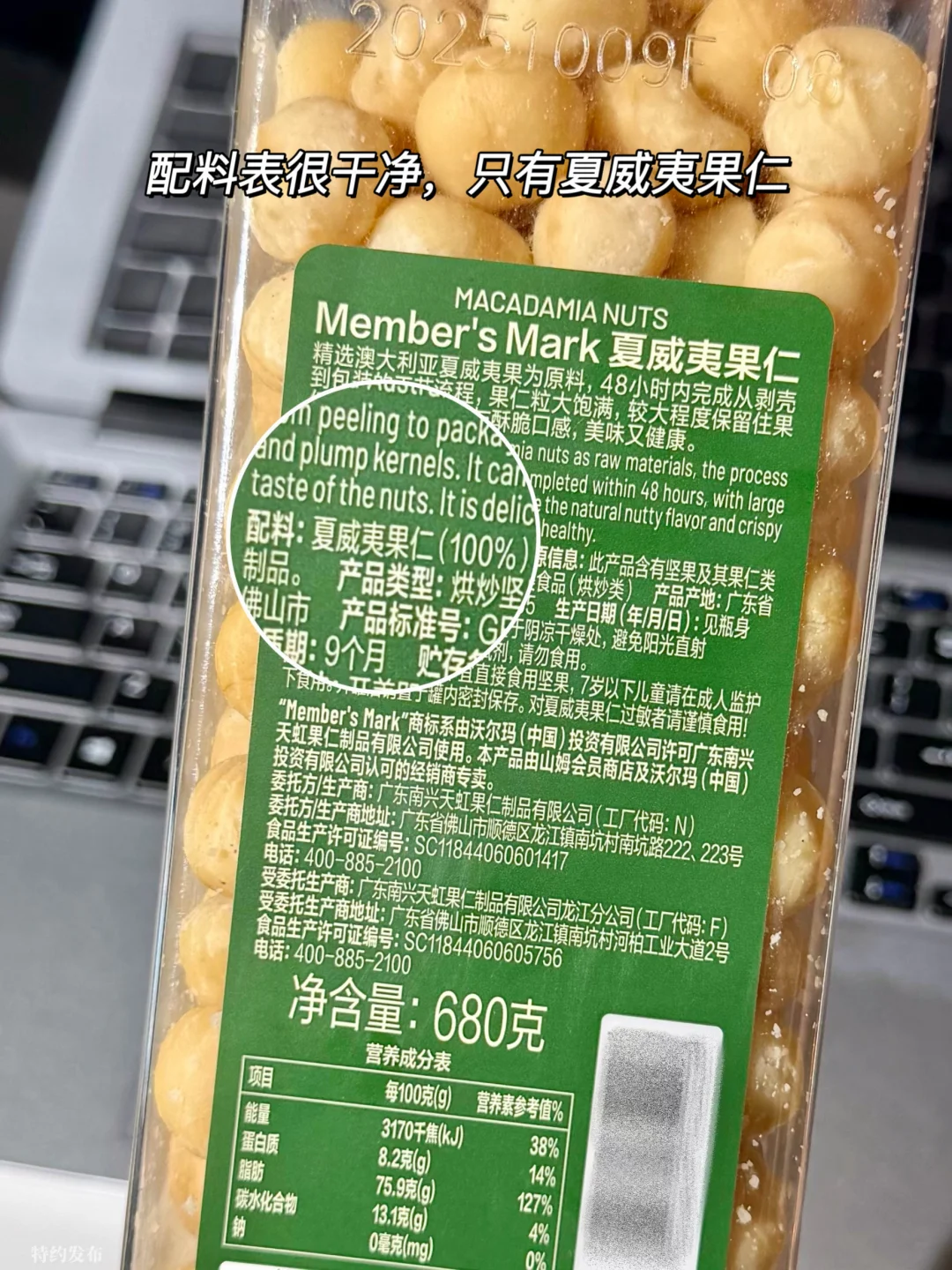 坚果脑袋一定不要错过山姆这个新品夏威夷果仁!! 一打开就闻到夏威夷果自带的坚果香和奶香 颗颗果仁饱满圆润,没有碎或者缺口的 咬一口很酥脆,奶香奶香,越嚼越上头,根本停不下来…… 看了下用的都是澳洲当季的夏威夷果!配料很干净 而且是原味烘烤,不是油炸,吃多也不怕上火啦 不愧是山姆MM自营品牌出的!!用料和品质巨好!! 性价比拉满了!! 爱吃果仁的姐妹一定要试试山姆这个新品夏威夷果!!