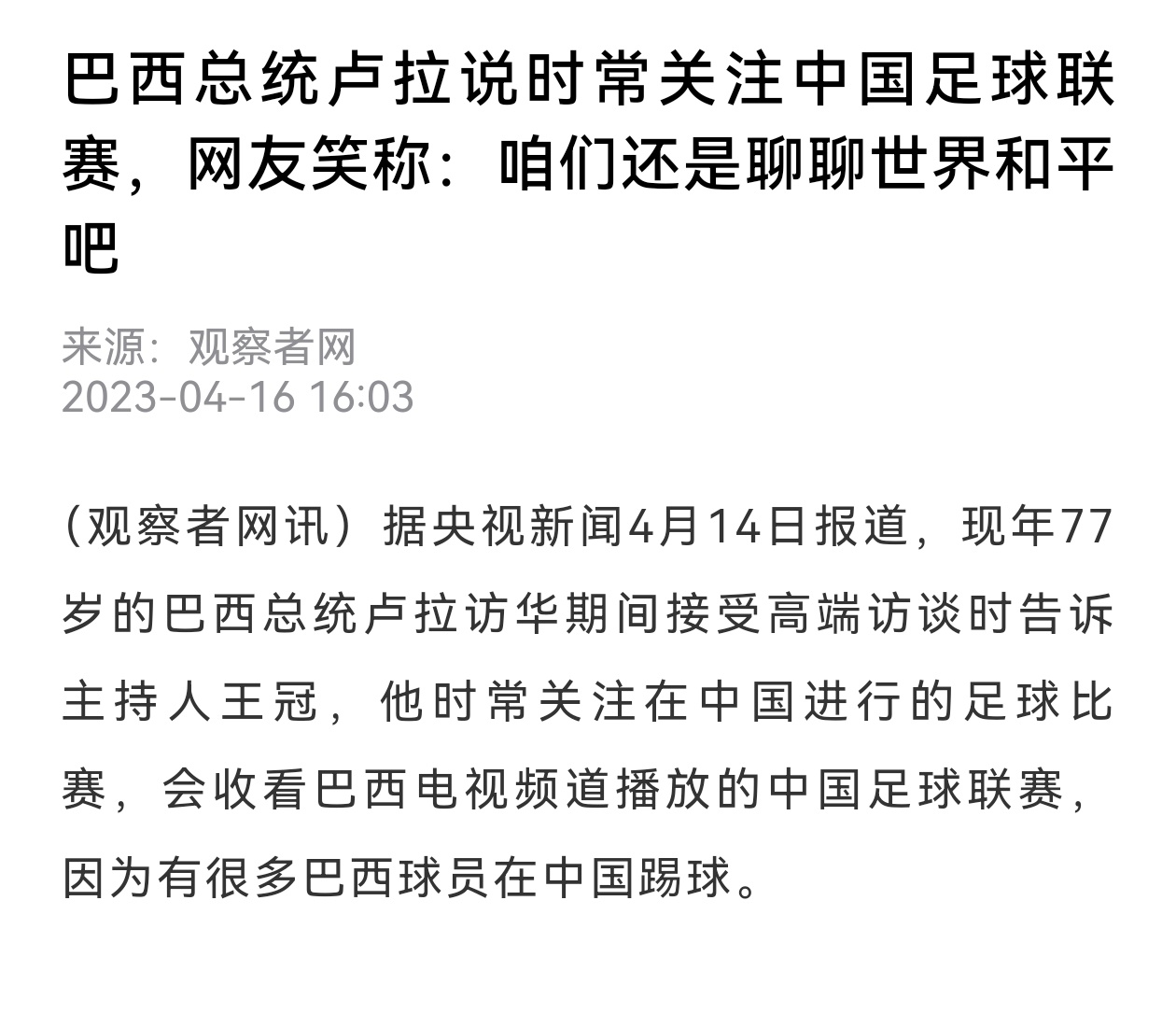 ✔️看来巴西总统说关注中超不是“开玩笑”,他们的媒体也很在意!💥毕竟当年很多巴西球员来踢中超!